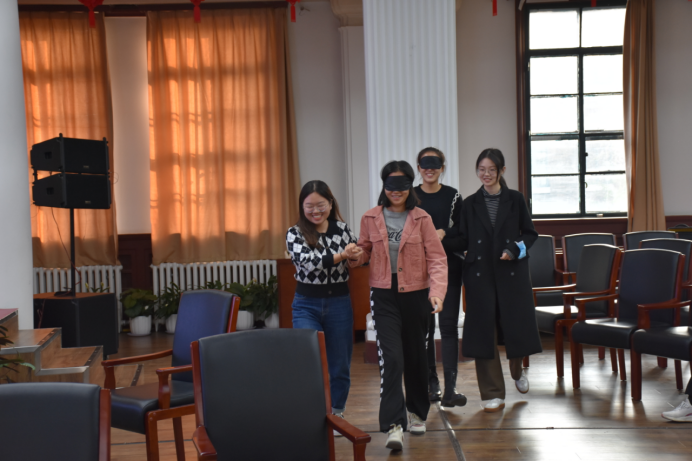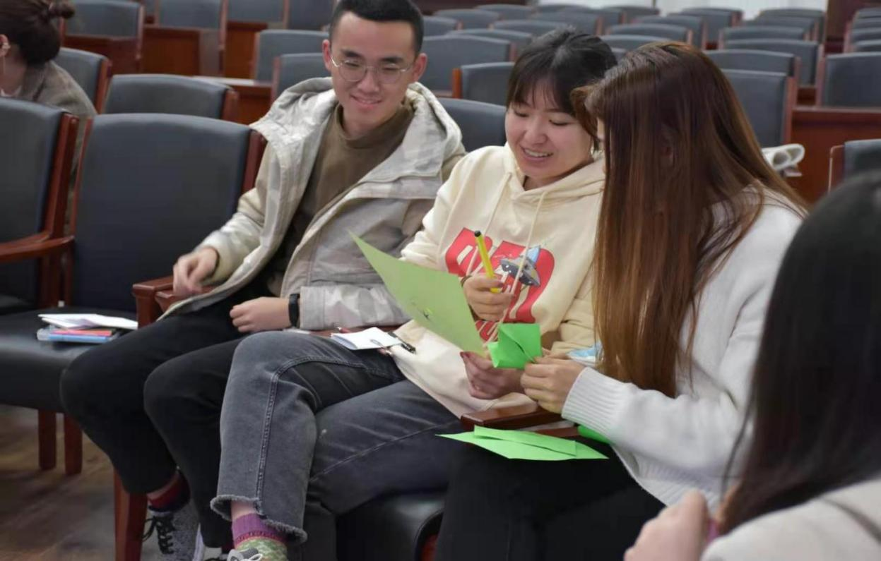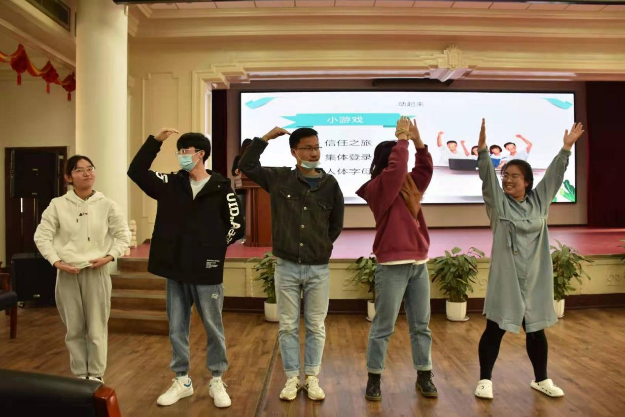 活动第一阶段,主持人引导同学们通过“一分钟鼓掌”小游戏,评估自我认知情况。随后结合现场同学们的实际游戏结果加以分析,为大家阐述了在科研道路上培养良好自我认知能力以及预估能力的重要性。活动第二阶段,全体新生分为不同组别,进行了“信任之旅”、“集体登陆”、“人体字母"三个游戏的比拼。活动气氛在游戏过程中走向高潮,通过团队的协作与努力,同学们之间从陌生变得熟悉,从拘束变得从容。活动第三阶段,全体同学共同绘制团体树,大家集思广益,共同勾勒出团体树郁郁葱葱的样子并拍张留念,珍藏美好。