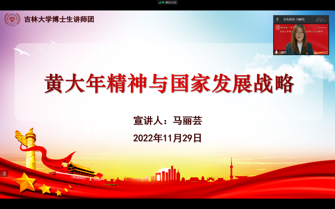 博士生讲师团讲师马丽芸开展党的二十大精神理论宣讲。本次宣讲的主题是“新征程·青年讲”—— 黄大年精神与国家发展战略。欧洲杯