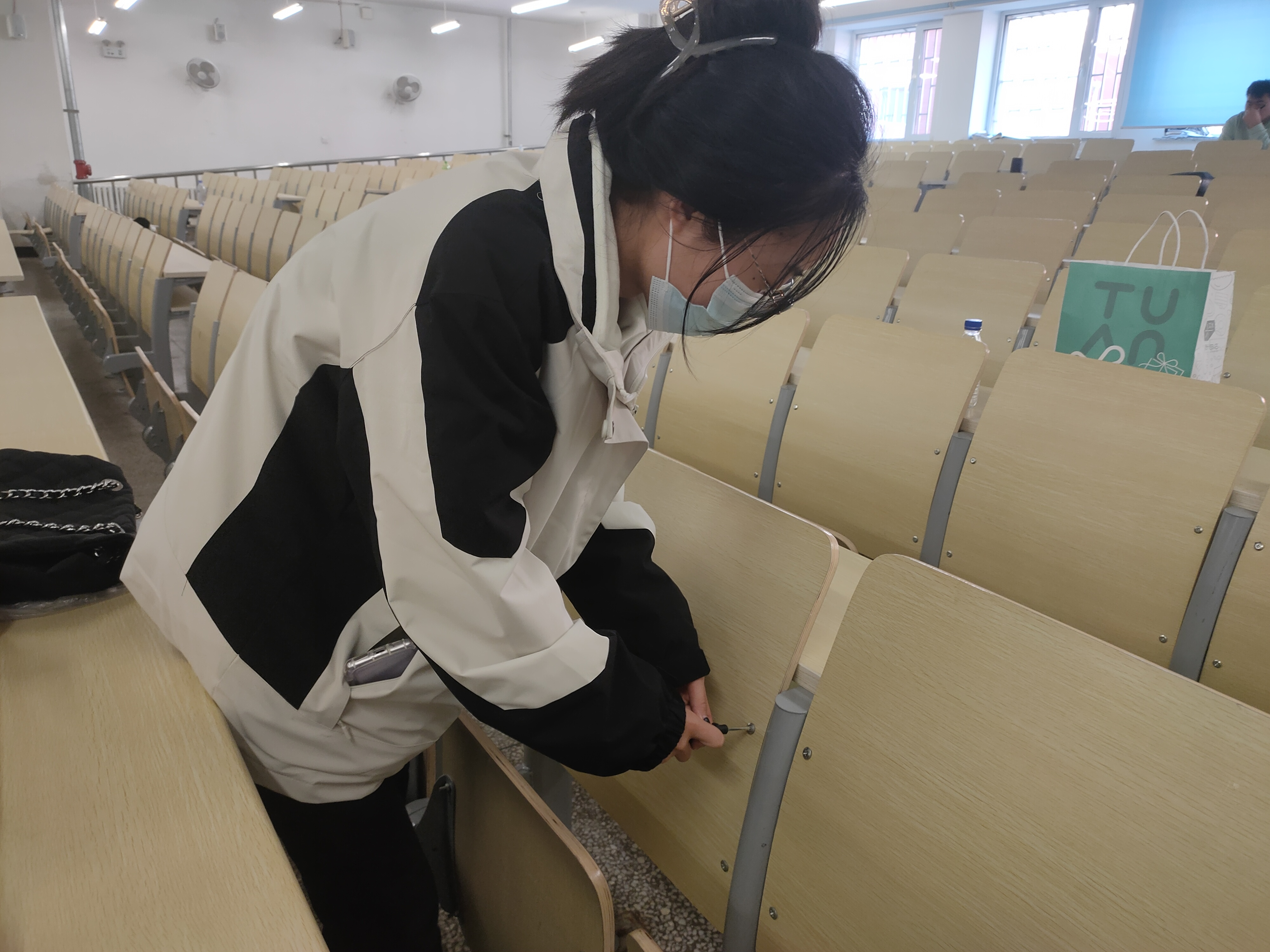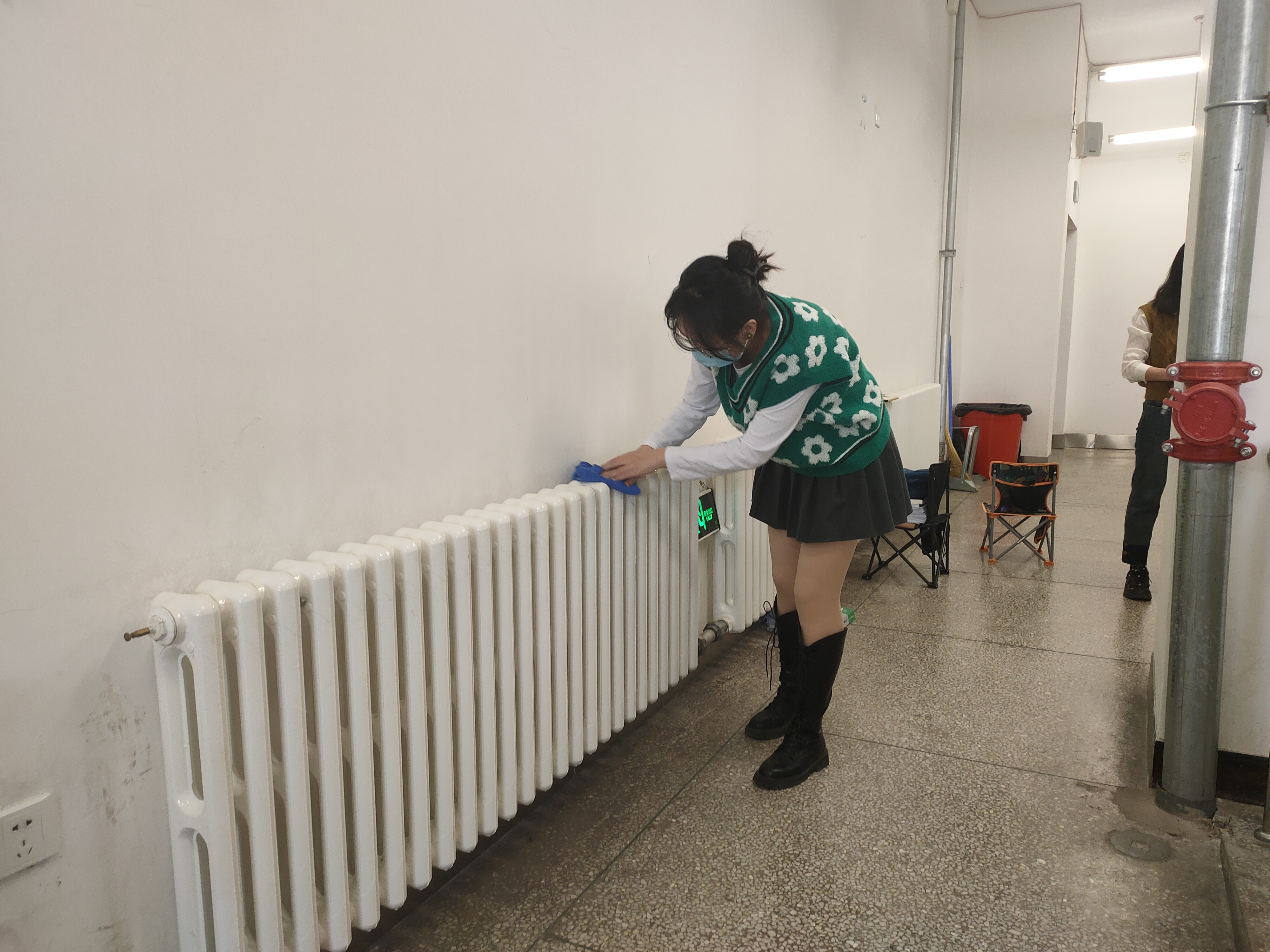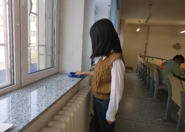 为了在中午同学吃午饭的时间高效完成任务,同学们被分成三个小组,同时在第一教学楼不同教室展开活动。活动的主要内容擦拭窗台、护栏、修理桌椅上松动和凸出的钉子令教室光洁明亮。