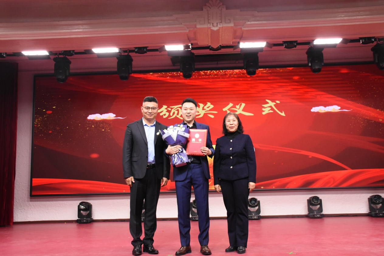 学生就业创业指导与服务中心副主任贾晓辉为2023年度研究生完美奖学金助学金获得者颁发荣誉证书。