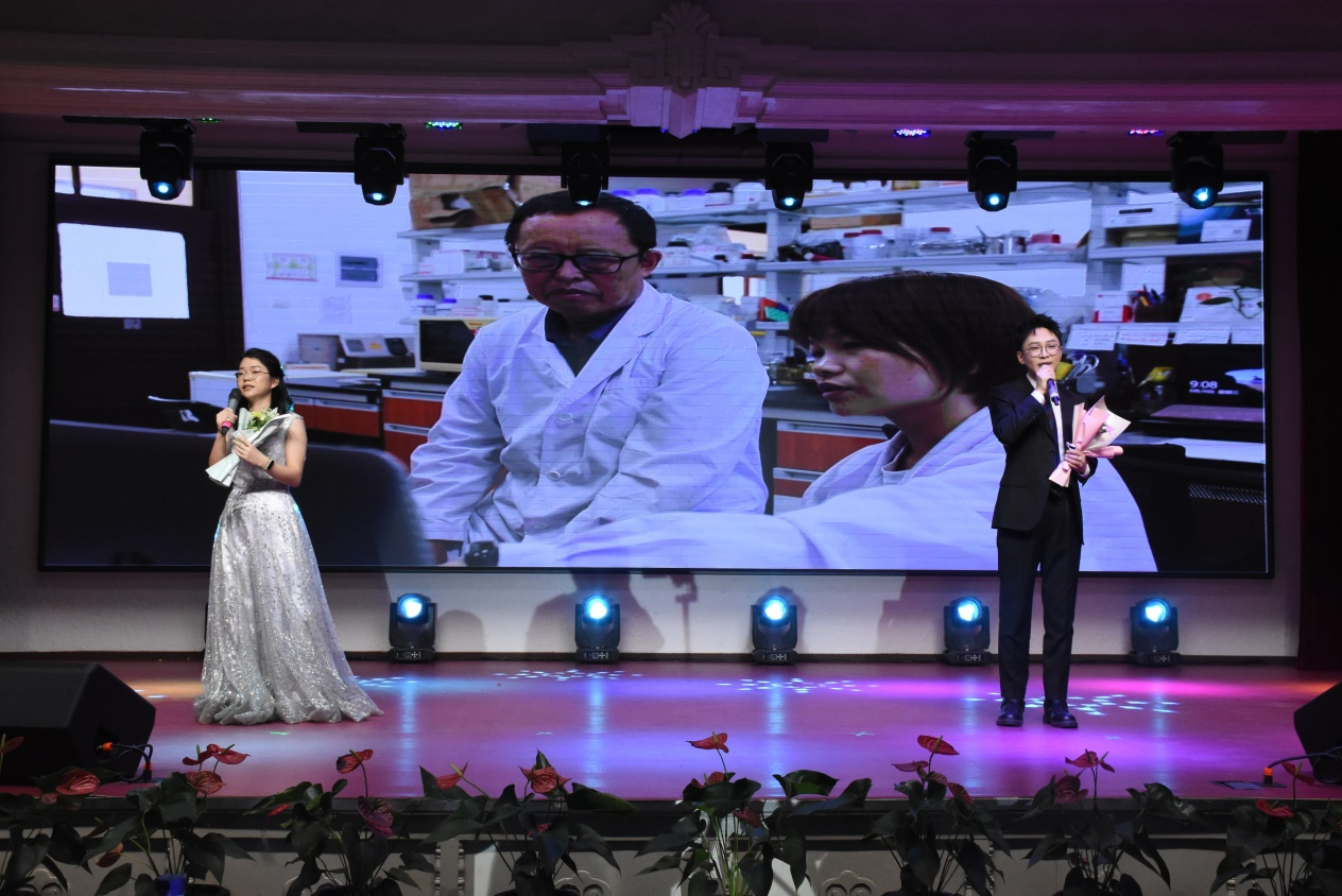 青年教师何侃、吕东芳和2023级新生代表共同演唱的开场歌曲《青春旋律》,拉开了晚会的序幕。