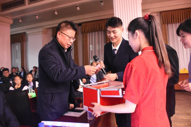 团委副书记张大权为2023年度本科生完美奖学金助学金获得者颁发证书。