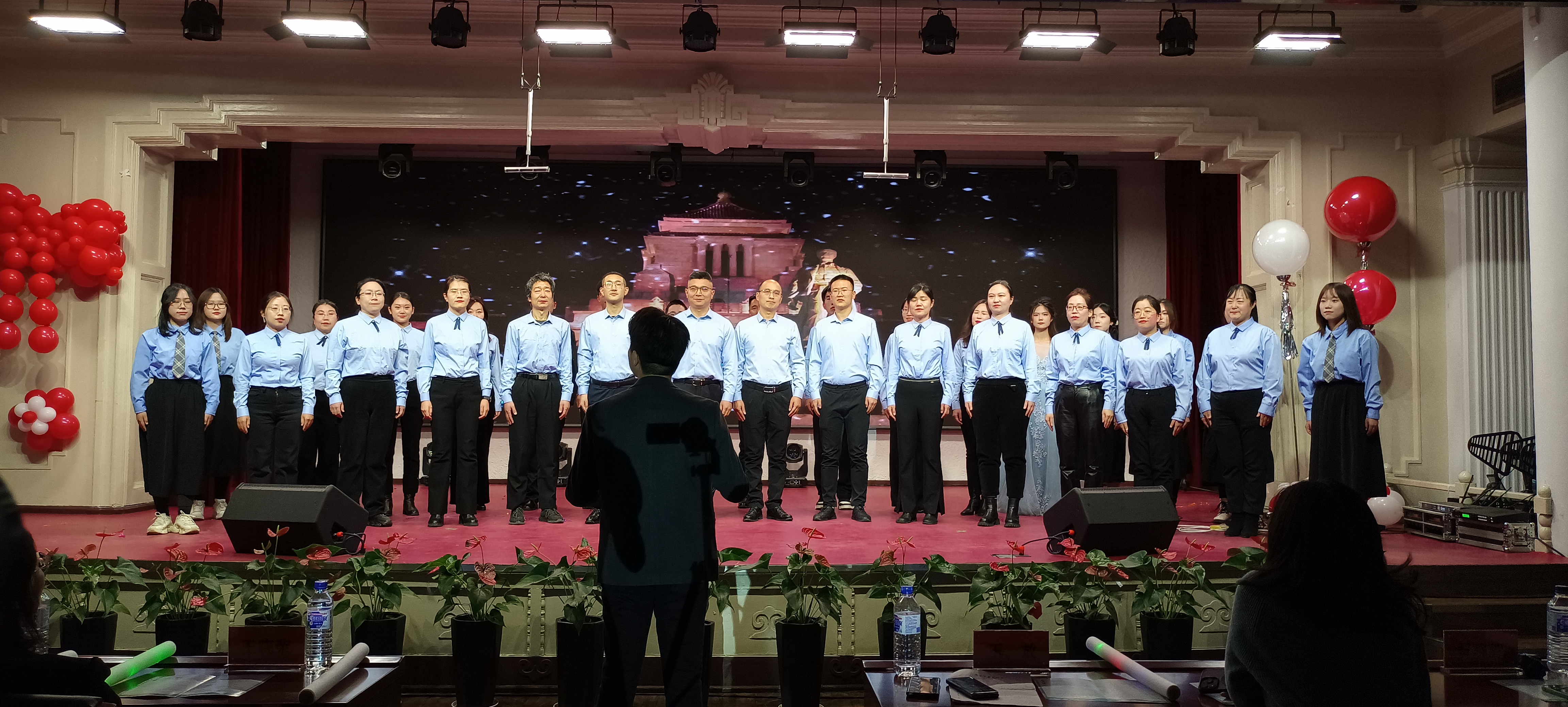 领导班子、各学系主任,以及全体2023级本科生、研究生和留学生共200余人观看了本场晚会。