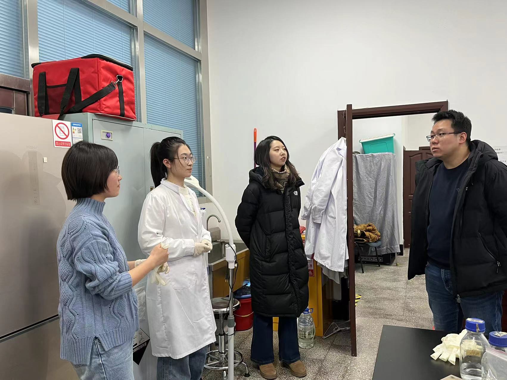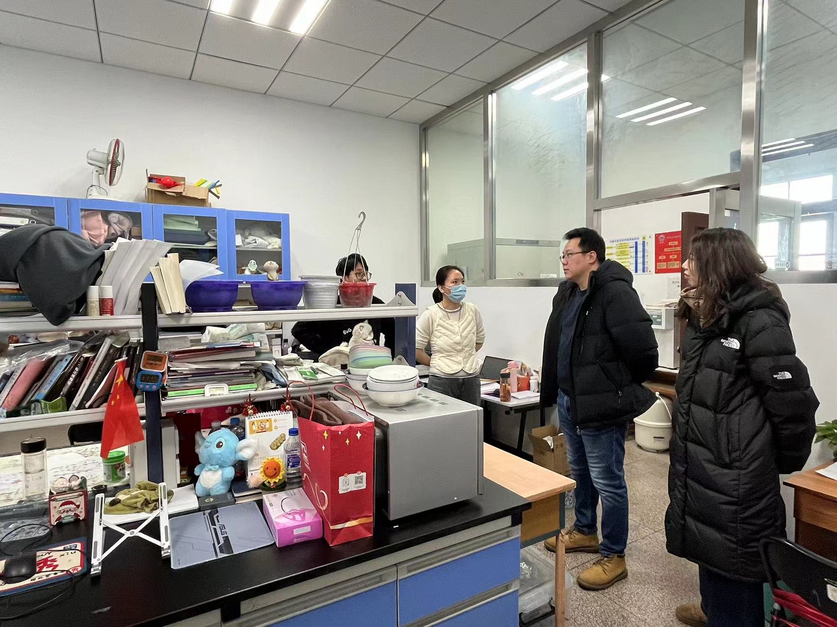 在走访实验室过程中,重点强调了实验室安全、消防安全、环境卫生、用电安全,以及危险化学品、危险废弃物处理情况,并与学生详细交谈,了解研究生科研内容、实验进展,强调要切实做好实验活动风险评估,强化安全意识,提升风险防控意识和能力。同时询问了同学们的返乡安排,强调了留校期间的管理要求以及出行报备,注意人身安全、消防安全、实验室安全、交通安全、谨防诈骗等。李东洋书记嘱咐学生们,安全第一,希望学生们都能平平安安完成实验计划,顺顺利利返乡过年。同学们纷纷表示,将进一步增强实验室安全意识,严格遵守各种安全管理规章制度,全力确保实验室安全。