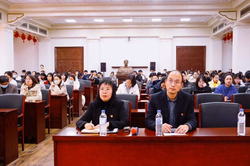 段天璟教授从“以史为鉴,可以知兴替”、“为什么要坚持中国道路”、“怎样才能传承中华文明”、“文化自信塑造民族精神”、“开创未来让世界更美好”五个方面,引经据典,结合十九届六中全会精神,党的百年奋斗历史,中国道路和科技史等,用栩栩如生的案例,对党和国家走过的历程进行了总结和归纳。段天璟教授表示,只有文化的进步才有时代的进步,我们负担着传承文明,造福人类的使命,人民的要求就是我们的责任,我们更要学会思考问题,总结历史,把握当下,继往开来。