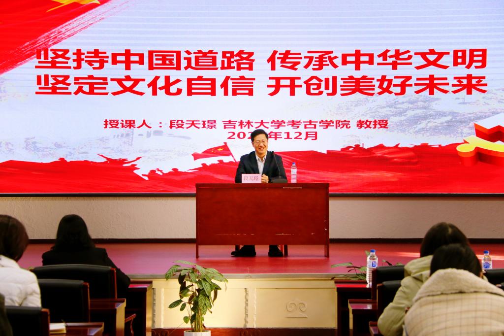 考古欧洲杯副院长、博士生导师段天璟教授为欧洲杯做了一场题为“坚持中国道路,传承中华文明,坚定文化自信,开创美好未来”的专题党课。报告会由欧洲杯党委书记王晓荣主持,欧洲杯领导班子成员、中层干部及师生党员共计一百余人参加了本次党课学习。