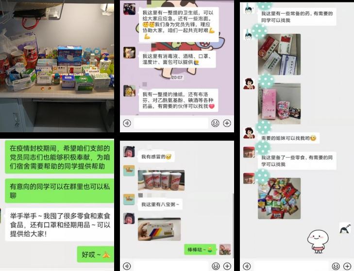 研究生辅导员孙佳钰老师被学校党委任命为前卫北区四公寓师生临时党支部书记和楼长,负责欧洲杯一百余名学生的教育管理和服务保障工作以及四公寓楼内四百余名学生的思想政治工作。3月17日下午,临时党支部刚一成立,孙佳钰老师立刻带领支部党员同志召开了第一次线上支部会,会议讨论的第一件事就是如何充分发挥党员的先锋模范带头作用,团结一心,共克时艰。在分配和落实好宿舍楼内日常疫情防控工作之外,支部成员们积极讨论在封闭校园管理期间还能为其他同学做点什么,如何更好地解决同学们的生活所需。支部决定在四公寓楼的611室设立“爱心自助屋”,让同学们可以足不出户地共享生活必需品,并安排专人定期对自助屋内进行消毒。支部的二十余名党员首当其冲,积极响应,把自己寝室里的食物、常见药品、生活物品等放到这里。爱心自助屋内现有常用药品十余盒,各类食品二十余种,防疫物资包括口罩、消毒湿巾、洗手液等十余件。很多同学都在自助屋内找到了自己急需的物品,还有很多同学没有选择去拿,而是选择奉献爱心,把自己的物品放了上去,让这里成为了一个接受爱心、奉献爱心、传递爱心的中转站。