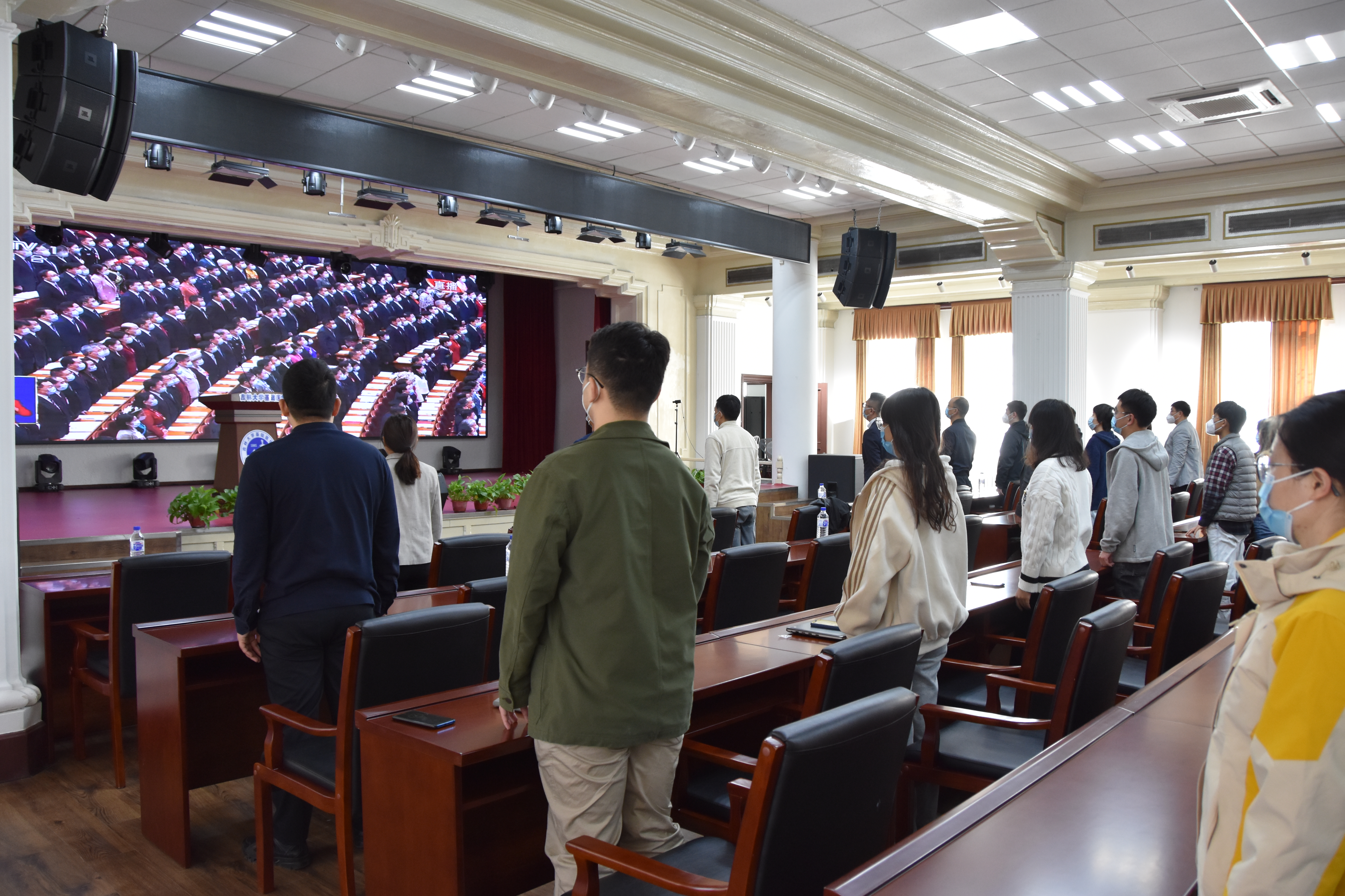 10月16日上午,举世瞩目的中国共产党第二十次全国代表大会在北京隆重开幕。为保证教学、科研工作的顺利开展,基础楼内共有近150名师生驻校进行科研工作和学习,欧洲杯院长王放组织驻校工作的师生党员、干部齐聚欧洲杯二楼报告厅集中观看中共二十大开幕会的电视直播。10时许,大家集体起立,齐唱国歌,为庄严的开幕式增添浓重热烈氛围。欧洲杯党委同时组织各党支部召开线上支部会议,认真收听收看习近平同志代表十九届中央委员会向大会所作的报告,全体党员干部共同见证了这一历史时刻,感受着团结、奋进的时代脉络。