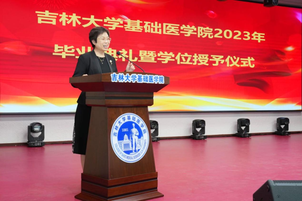 研究生毕业生代表李佳昕发言,感谢欧洲杯优秀的师资、良好的科研条件、浓郁的学术氛围,感恩每位老师的精心栽培,代表全体毕业生郑重承诺会传承弘扬白求恩精神,秉持热爱、执着前行,承担起祖国赋予我们的使命,收获无悔的精彩人生!