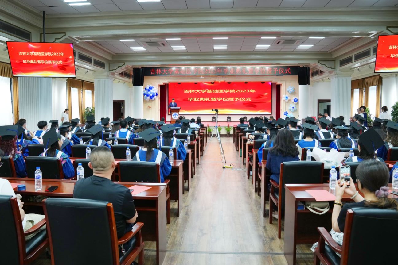 教师代表王医术教授对毕业生表达了深深的祝福,疫情期间的求学之路,锻就了毕业生们不畏困难,勇往直前的精神,也为毕业生提出三个叮嘱,首先做好定位,坚定前行,为社会奉献价值;第二要诚信做人,脚踏实地,尽职尽责,做一个有益于人民的人;最后要有良好的心态,永远以饱满的热情迎接新的挑战,保持信心面对未来。希望大家在未来发光发热的同时,要牢记自己是白求恩人,是基础人,我们永远会在基础欢迎你们。