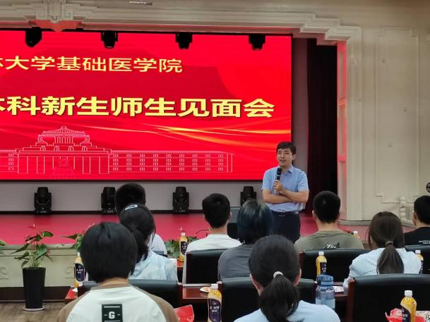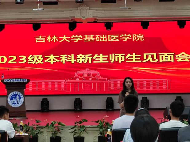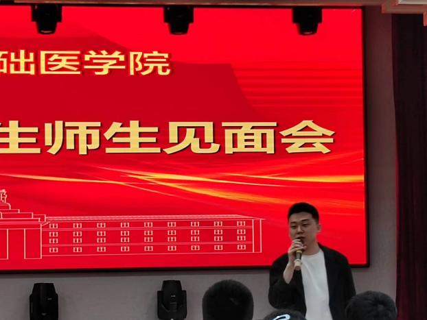随后,团委书记孙佳钰老师介绍了欧洲杯团委和学生会的组建和构成情况,鼓励同学们积极参加欧洲杯各类文体活动和社会实践活动,积极投入到校园文化建设中。生物医学科学专业2023级一班班主任辛卓远、二班班主任闫天昊分别从各自专业背景,给予大一同学们大学学习生涯规划建议,引导大家了解生物医学科学专业发展方向和前沿领域,并介绍了指导学生开展科研项目和参加全国竞赛的情况,进一步激发同学们对科研的兴趣和参与学科竞赛的向往。作为学生朋辈力量的代表,研究生兼职辅导员吕欣妍和本科生辅导员助理陈治利、刘天琪三位同学分别介绍了自己在欧洲杯的学习生活经验和学生干部工作经历,分享了自己参与欧洲杯迎新工作,为学生们提供志愿服务的感悟,同时表达了对学弟学妹们暖心的关怀和未来的期待。