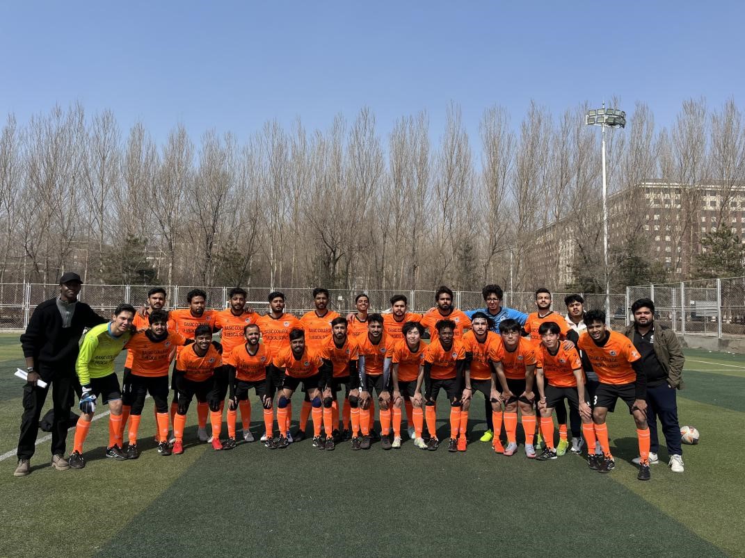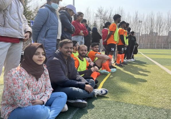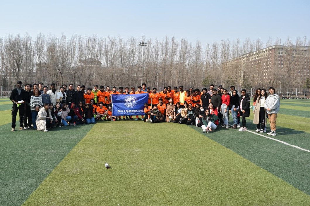 取得1:0领先。下半场易边再战,还是由SHUBHAM同学,沿左路突破,甩开多名防守球员后冷静起脚,足球划过对方守门员十指应声入网,个人连中两球。比赛临近尾声,2018级留学生SHIBILY 接中场队友助攻,一记势大力沉的临空抽射,再次洞穿对方球门,最终比分定格在3:0。