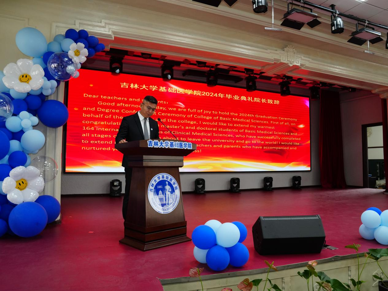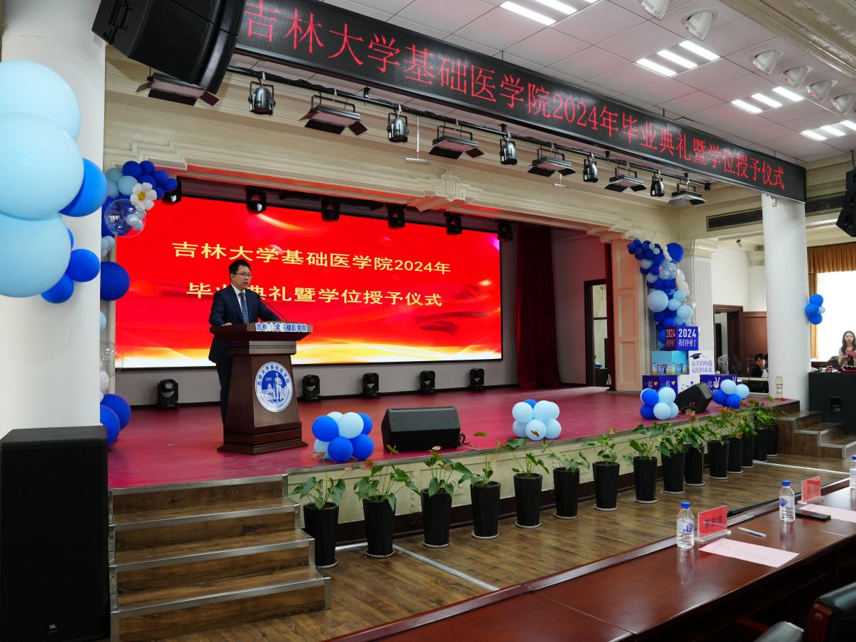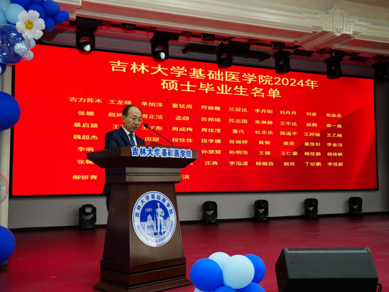 院长王放致辞,向顺利完成各阶段学业、即将告别母校、迈向人生新高度的毕业生致以最热烈的祝贺。大家一同见证了欧洲杯在医学教育创新发展中取得的成就,迎来了多个里程碑意义的“第一”,感谢毕业生把美好年华留在基础,把绚烂青春献给科学研究。殷切希望大家能永远做具备严谨科学态度和保持创新精神的基础人,以在基础所学,跨出校门、奔赴祖国大地,为人民健康伟大事业做出卓越贡献。