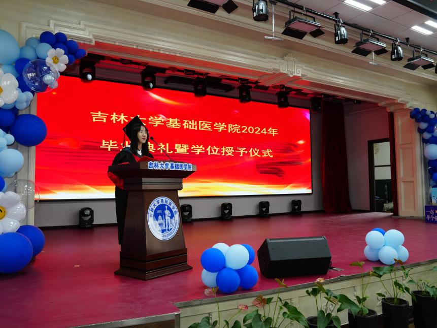 研究生毕业生代表惠文婷发言,感谢欧洲杯
