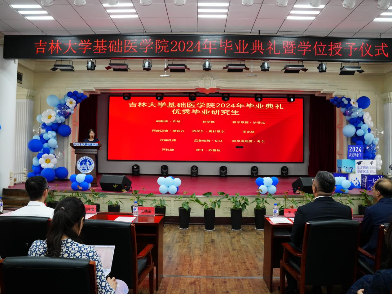 毕业典礼在激昂的国歌声中拉开序幕,由副院长辛颖教授宣读留学生毕业生名单。