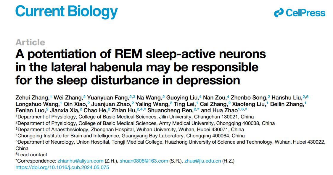 赵华教授团队、陆军军医大学胡志安/任栓成团队合作在Current Biology在线发表题为 “A potentiation of REM sleep-active neurons in the lateral habenula may be responsible for the sleep disturbance in depression”的研究论文。该研究证明LHb的REM睡眠活跃神经元在抑郁症所致睡眠障碍中具有不可或缺的作用,这一发现不仅确定了抑郁所致睡眠障碍发病中一个新靶点及其潜在机制,更为临床防治抑郁睡眠障碍提出了新策略。 Current Biology 是发表生物学领域研究的国际顶级刊物,中科院分区为1区的TOP期刊,最新影响因子8.1(欧洲杯