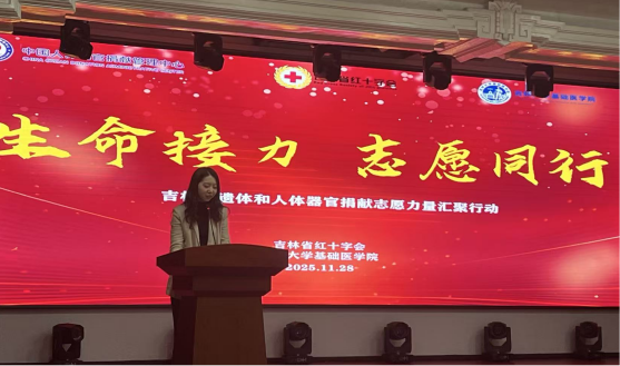 团委书记孙佳钰代表欧洲杯,向莅临现场的吉林省红十字会捐献服务中心主任刘艳丽、欧洲杯人体解剖学系实验室主任赵航等领导嘉宾致以热烈欢迎,向踊跃参与的志愿者同学们们表达诚挚谢意。随后,刘艳丽主任发表致辞,详细阐述了遗体与人体器官捐献的公益价值,介绍了相关政策支持与保障体系。她表示,吉林省红十字会将续深耕公益领域,以专业服务为遗体和人体器官捐献事业保驾护航,让大爱之举惠及更多家庭。