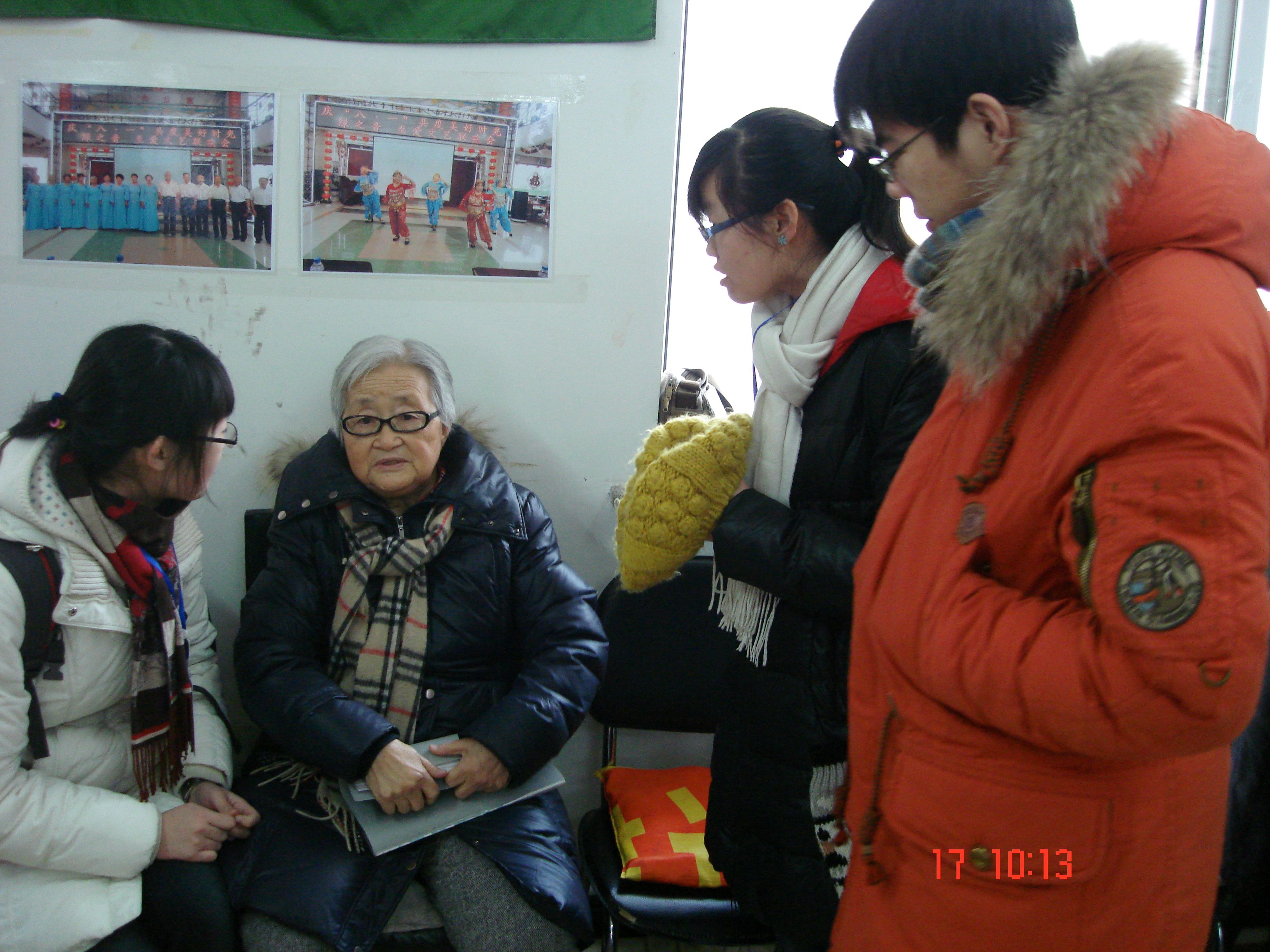 志愿者们来到建工社区,首先向在社区活动室活动的社区居民,介绍了十八大的新精神并和大家一起讨论了社区医疗的变化,紧接着志愿者们发挥自身学科优势,用通俗易懂的语言讲解常见慢性病,老年病的预防。同时,社区的老人们对同学们的到访也表示热烈的欢迎,在社区的老年合唱团的提议下,志愿者队伍与合唱团的老人们进行了“以歌会友”的活动。在社会实践的过程中,温暖欢快的氛围感染着在场的每一个人。