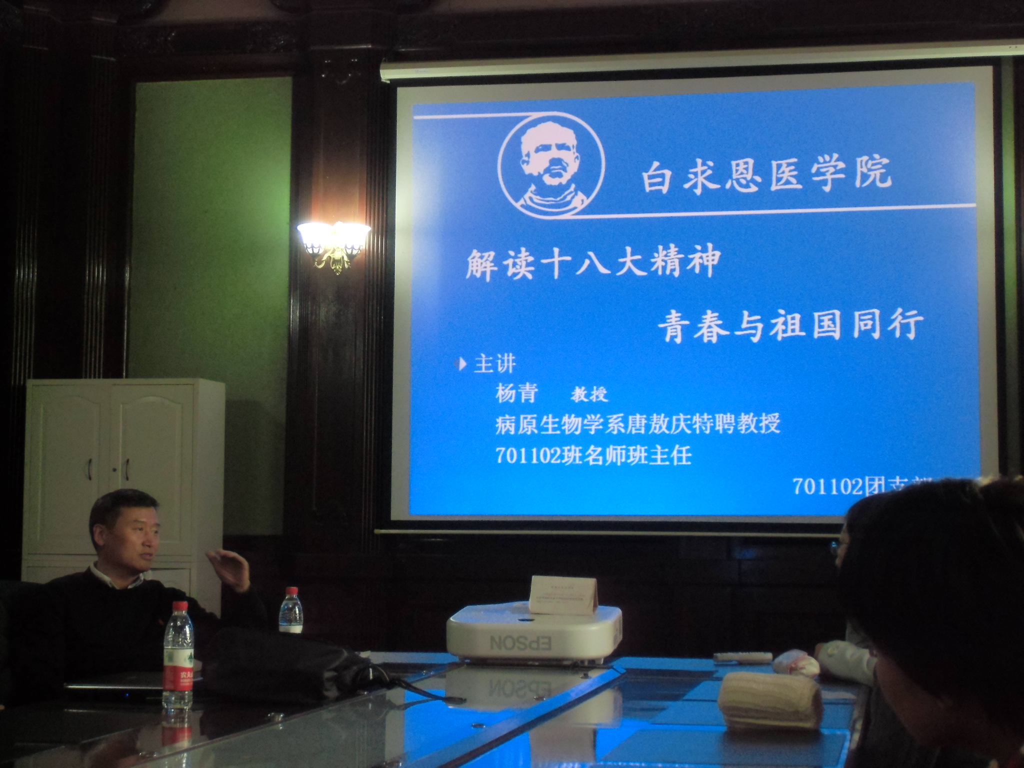 11月25日下午,白求恩医欧洲杯病原生物学系唐敖庆特聘教授杨青在新民校区基础楼四楼会议室与所带班级701102班全体同学召开主题班会。
