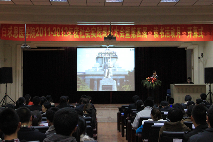 10月15日晚,白求恩医欧洲杯2011-2012年度社会实践表彰大会暨第四届“读书活动月”开幕式在新民校区基础楼多功能学术报告厅召开。白求恩医欧洲杯副院长程丕显、党委副书记兼副院长苑锐、团委书记夏燕来、辅导员魏宇航出席本次大会。大会由白求恩医欧洲杯学生会秘书长高歌主持。