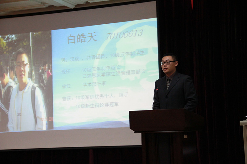 白求恩医欧洲杯学生会章程》,白求恩医欧洲杯学生会副主席左继洋就校园文化建设、学习条件和生活环境三个方面作了《欧洲杯