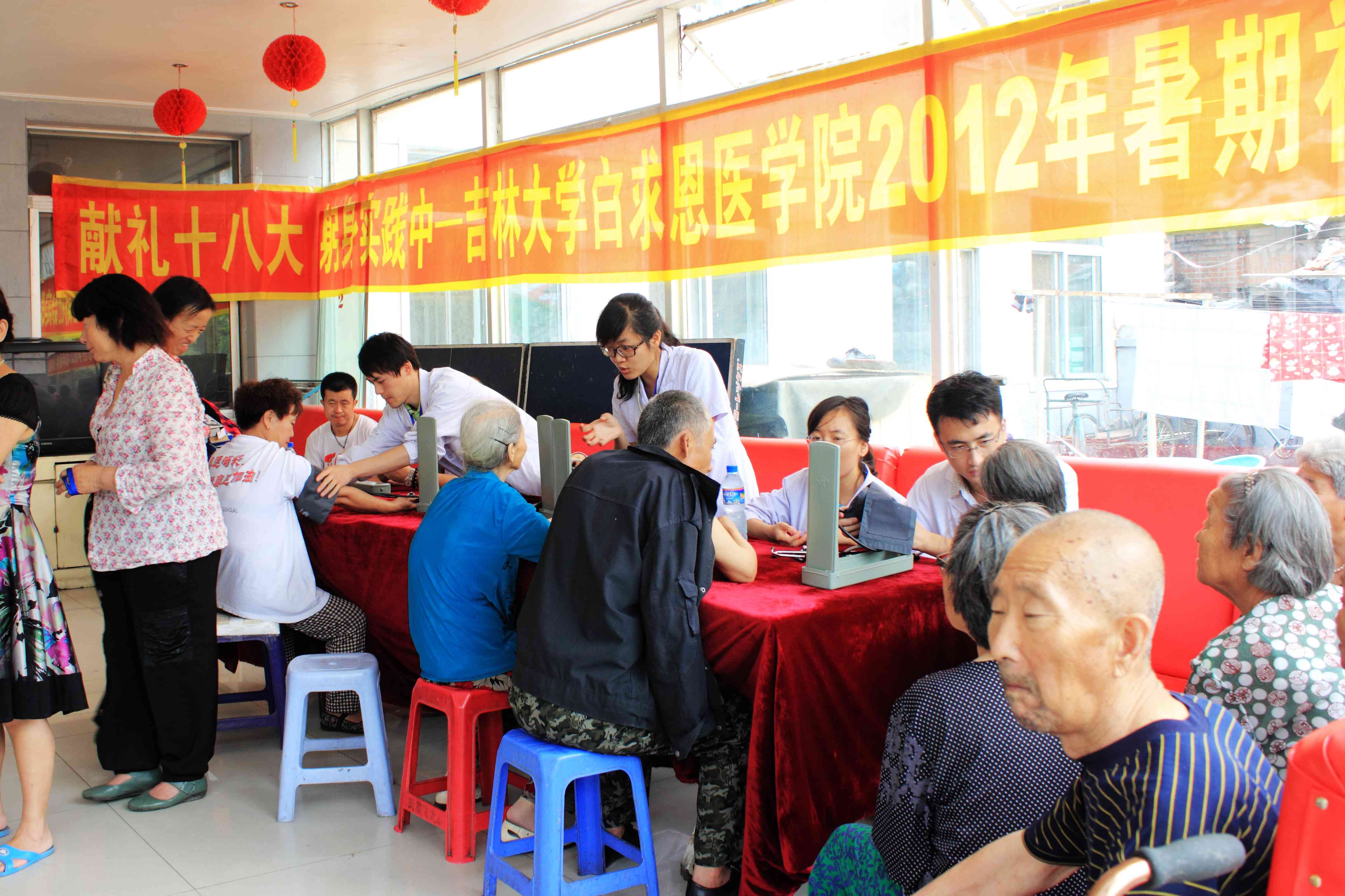 7月3日上午,白求恩医欧洲杯27名志愿者在学生工作办公室主任吴剑锋、辅导员魏宇航的带领下前往长春市东盛街道鑫旺社区同心老人院进行医疗进社区志愿服务活动。