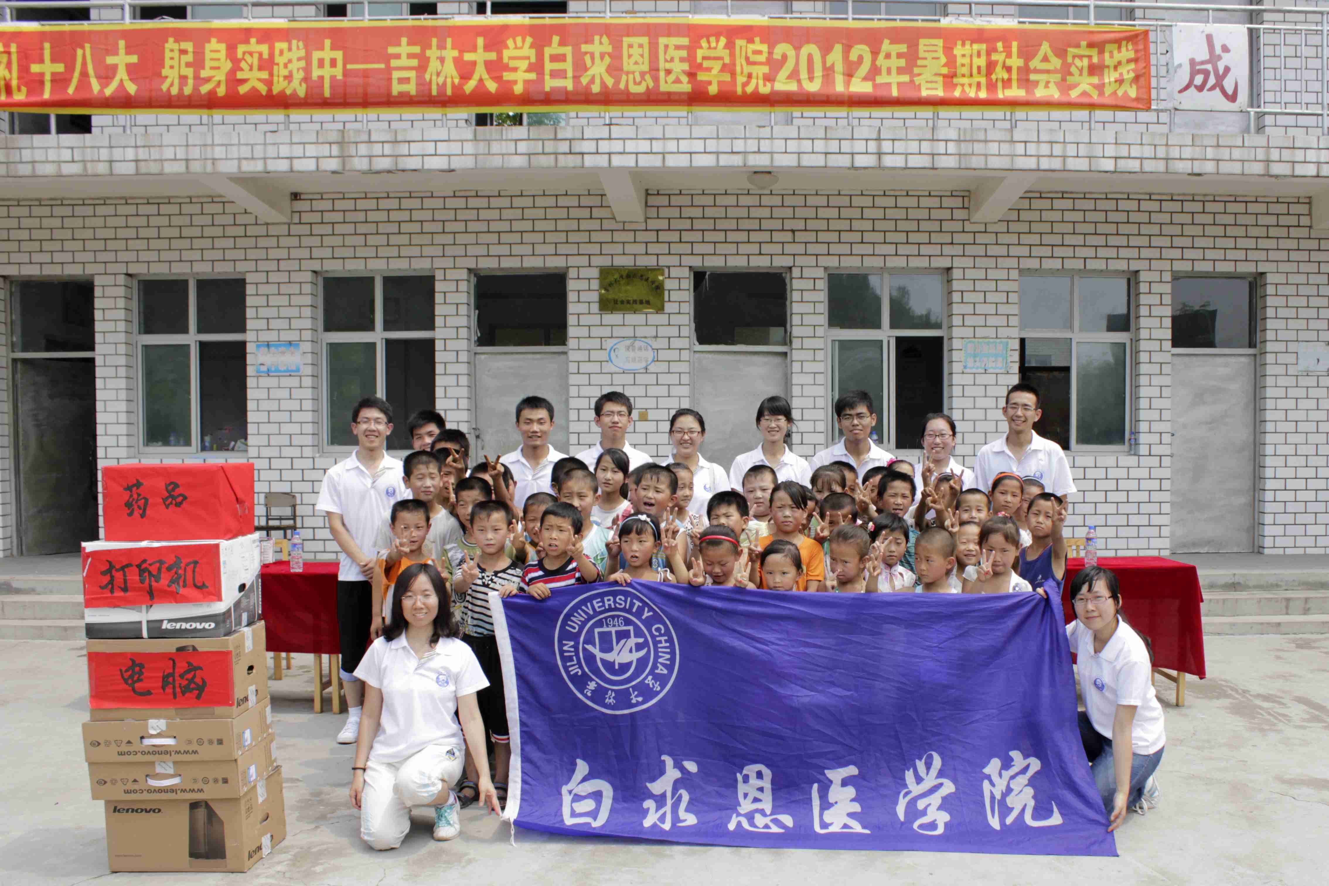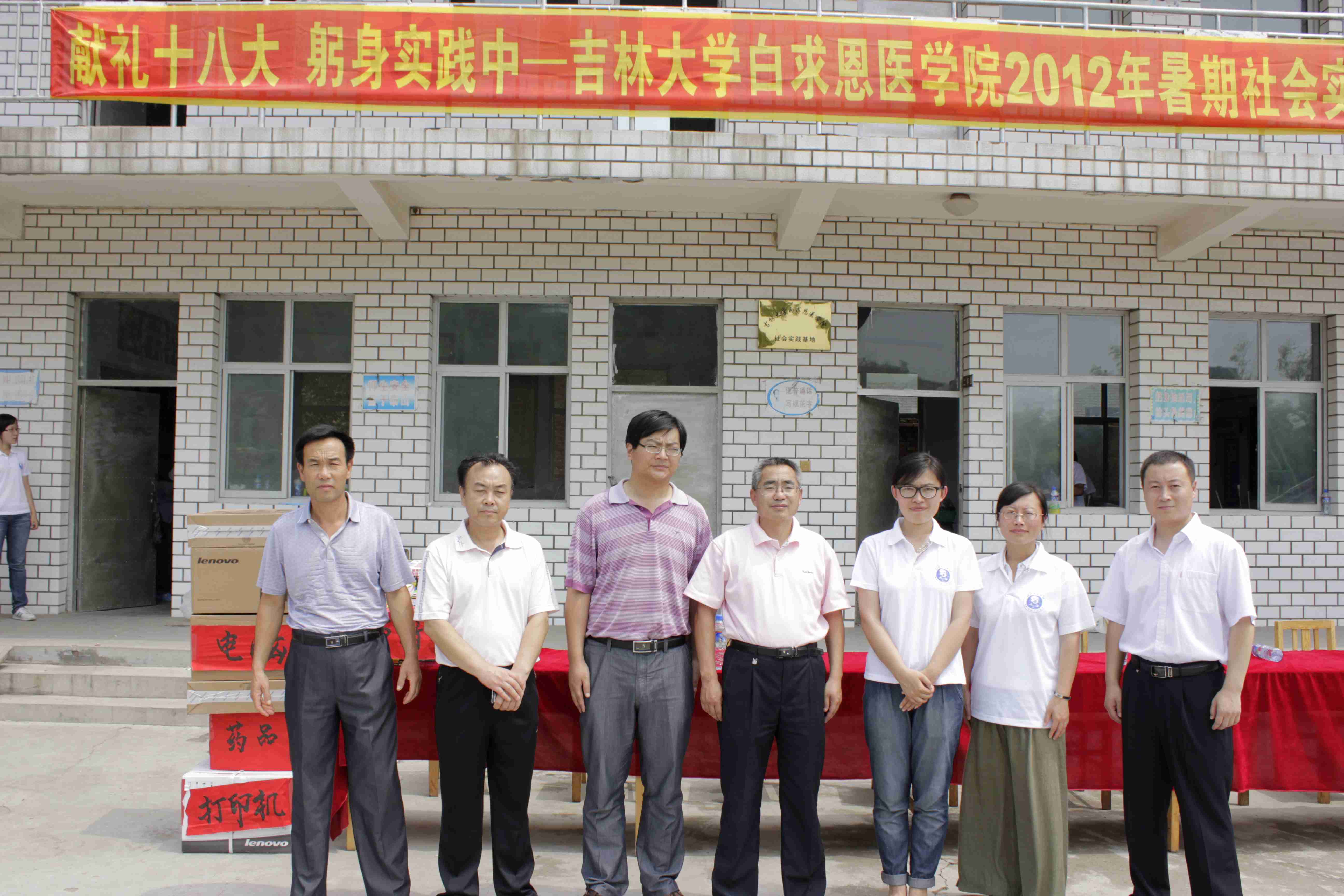 上午,爱心物品捐赠仪式正式开始。唐县团委及教育局的领导,白求恩医欧洲杯社会实践小分队带队教师魏宇航,指导教师孙娇出席了仪式,社会实践小分队全体队员和所有孩子们也列队参加了仪式。队员李腾海担任主持人。首先,赵狄、张颖异代表社会实践小分队与唐县领导进行了物品交接,包括白求恩医欧洲杯“爱心一元捐”募集的资金购置的打印机、中宏人寿保险有限公司捐赠的电脑和书籍以及由吉林省慈善总会捐赠的药品。接下来,唐县团委副书记曹庆伟发言,他对社会实践小分队的到来表示欢迎,并希望小分队能够把这里的白求恩精神带回欧洲杯,带给更多的白医学子。随后,唐县教育局办公室主任史耀东发言,他告诉孩子们要心存感恩,努力学习,走出大山,成为真正对社会有用的人才。最后,由本次社会实践小分队带队教师魏宇航进行发言,首先她代表白求恩医欧洲杯对所有关心和支持学生社会实践的领导和乡亲们表示感谢,同时肯定了四年来河北唐县社会实践对学生成长的巨大作用,尤其是在这里成立白求恩医欧洲杯社会实践基地以来,一批又一批的队员们来到这里,接受白求恩精神的洗礼,并在日后的学习和工作中努力践行白求恩精神。魏宇航还表示此项社会实践会长期坚持下去,以更好地教育学生,引导学生,使他们真正的成为白求恩式的医务工作者,报效祖国,回馈社会。