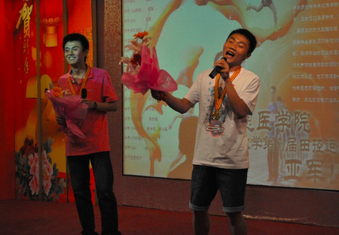 随后,屈英和为在运动会中获得金牌的运动员代表颁奖,并合影留念。整个会场气氛融洽,大家在欢乐中共同分享成功的喜悦。(学生记者:任景炎)
