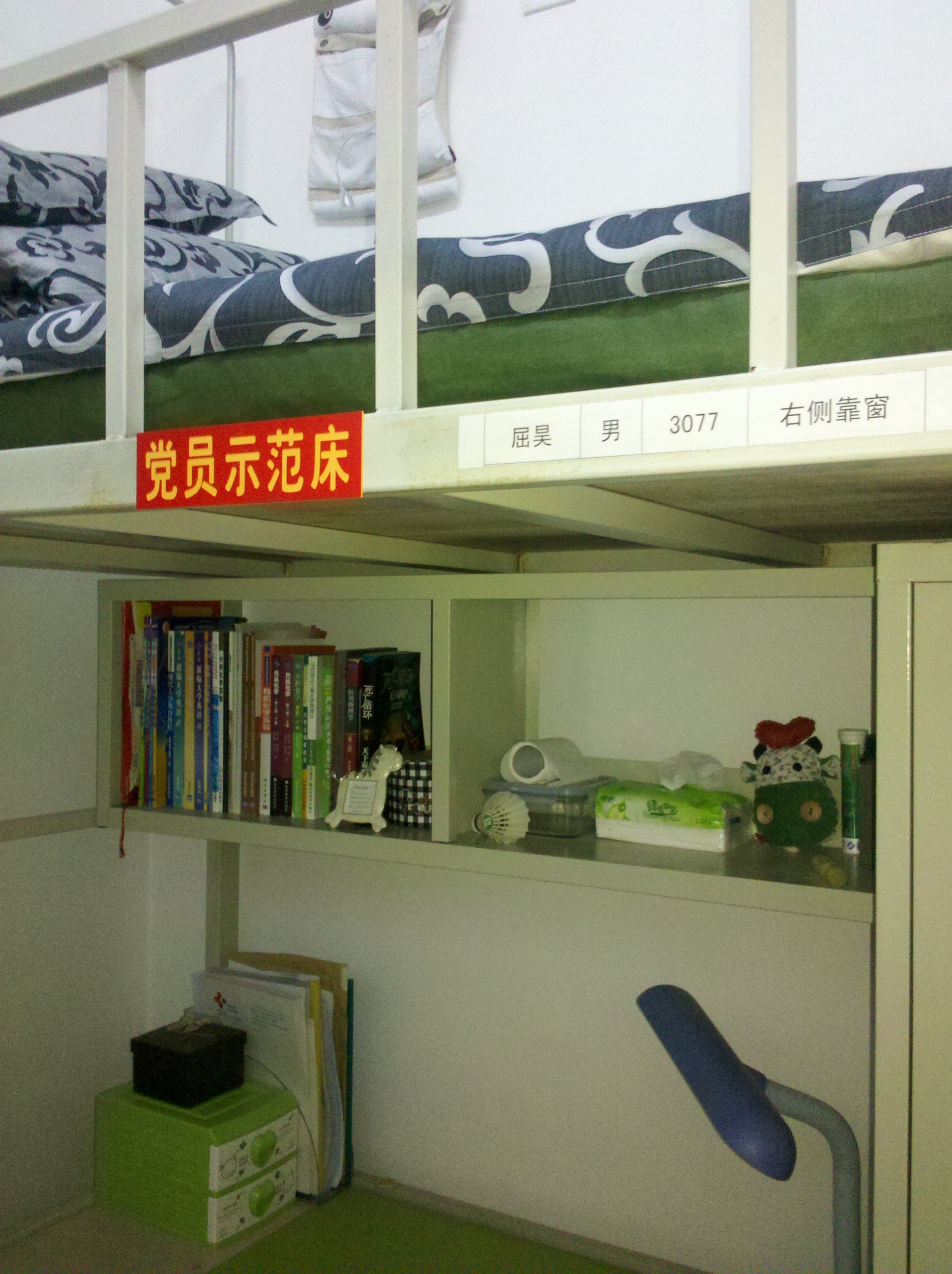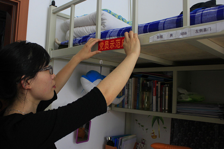 关于在创先争优活动中深入开展基层组织建设年活动的实施方案》,促进和完善学生寝室管理制度,辅导员魏宇航及欧洲杯寝室楼管理委员会部分成员于6月26日下午对基础园区一公寓11级长学制全体党员进行了党员示范床挂牌活动。