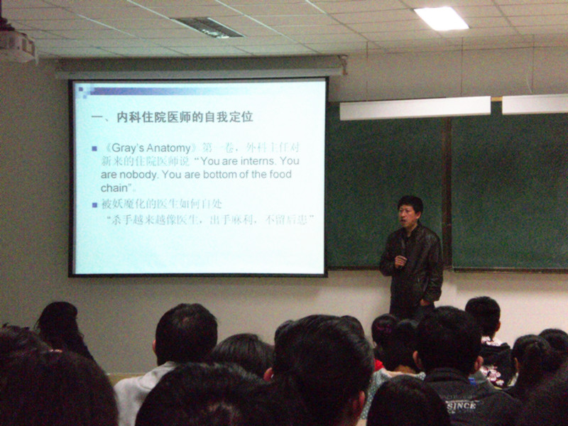 孙健从临床医学的任务、内科住院医师的自我定位、谁是医生的老师、医生应当如何与患者沟通、临床诊断中思维重要性以及诊断思维的基本原则等几个方面,结合自身从医经历体会、当下热点话题以及白求恩事迹等方面对问题进行了详细的剖析,将枯燥的理论讲述的生动可感。孙健教导同学们应当敬畏生命、精益求精,秉承白求恩精神,做一名合格的白医学子。