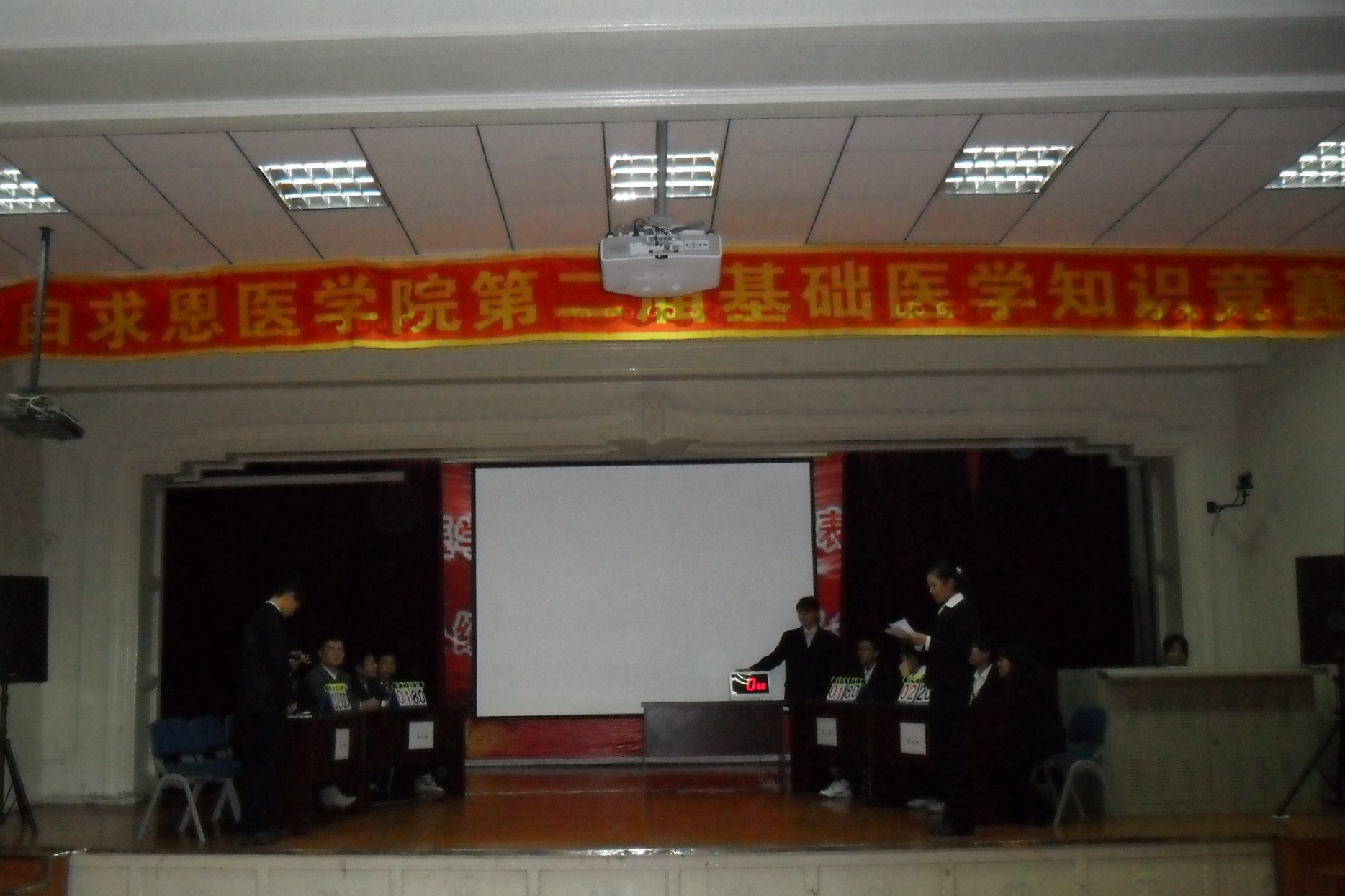 为加强医学生对基础医学知识的掌握程度、活跃学术气氛、加强欧洲杯医学人文环境建设,11月3日晚,白求恩医欧洲杯第二届基础医学知识竞赛决赛在基础楼二楼多功能学术报告厅隆重举办。担任本次竞赛的评委有吉林省解剖学会常务理事兼秘书长、白求恩医欧洲杯人体解剖学系教授李幼琼、白求恩医欧洲杯生物化学教研室副教授刘畅及生理学系讲师于蕾,白求恩医欧洲杯党委副书记兼副院长苑锐也应邀参加了本次活动。