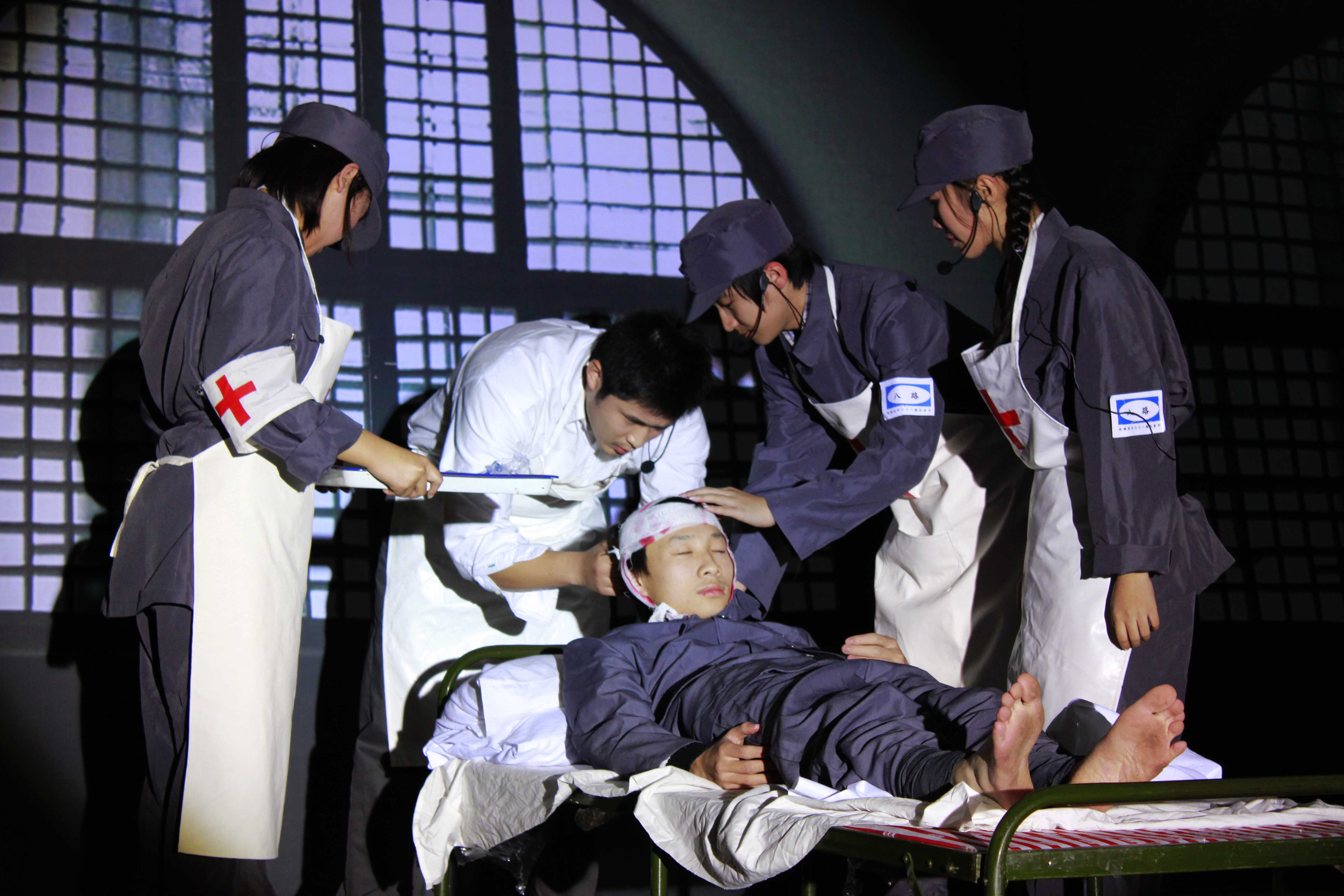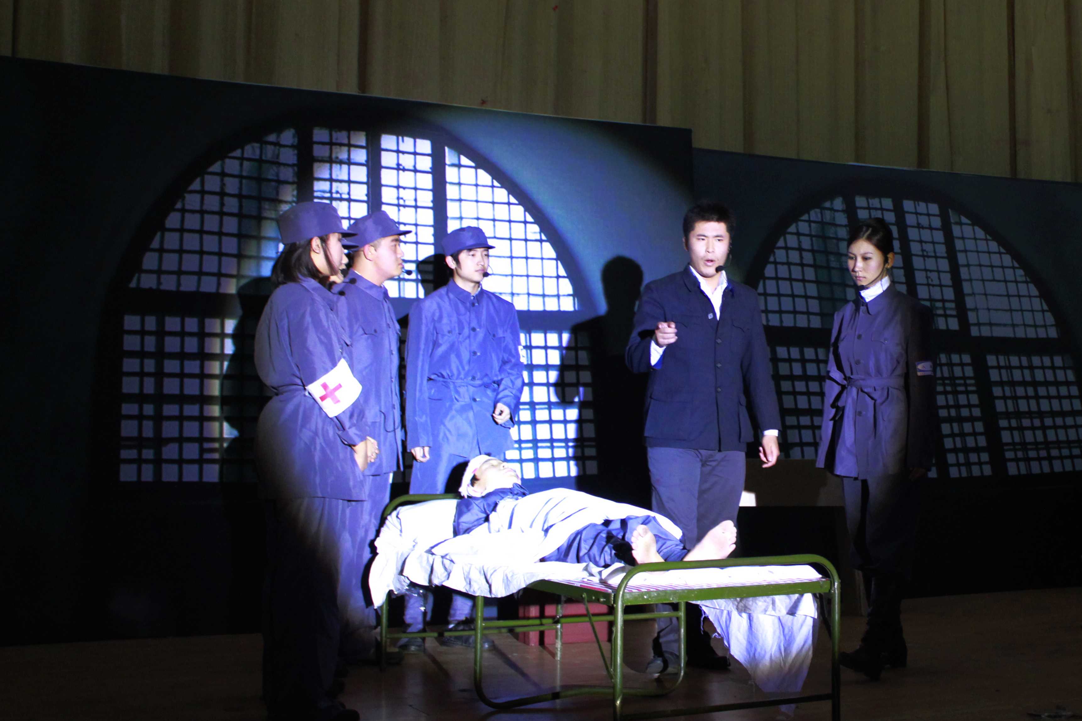 历时一个小时的话剧,讲述了诺尔曼·白求恩的一个个平实、感人的故事。从1938年1月8日白求恩同志来到中国,到投身艰苦的环境并创建卫生学校;从组织第一次战地输血到发明“卢沟桥药驮子”;从在前线坚持救人到在手术中感染丹毒……。整场话剧将白求恩大夫在中国一年零十一个月的经历浓缩地演绎出来,尾声中,当战士托着白求恩的遗像缓缓走向舞台时,全场同学都起立,向伟大的国际主义战士——诺尔曼·白求恩致意。