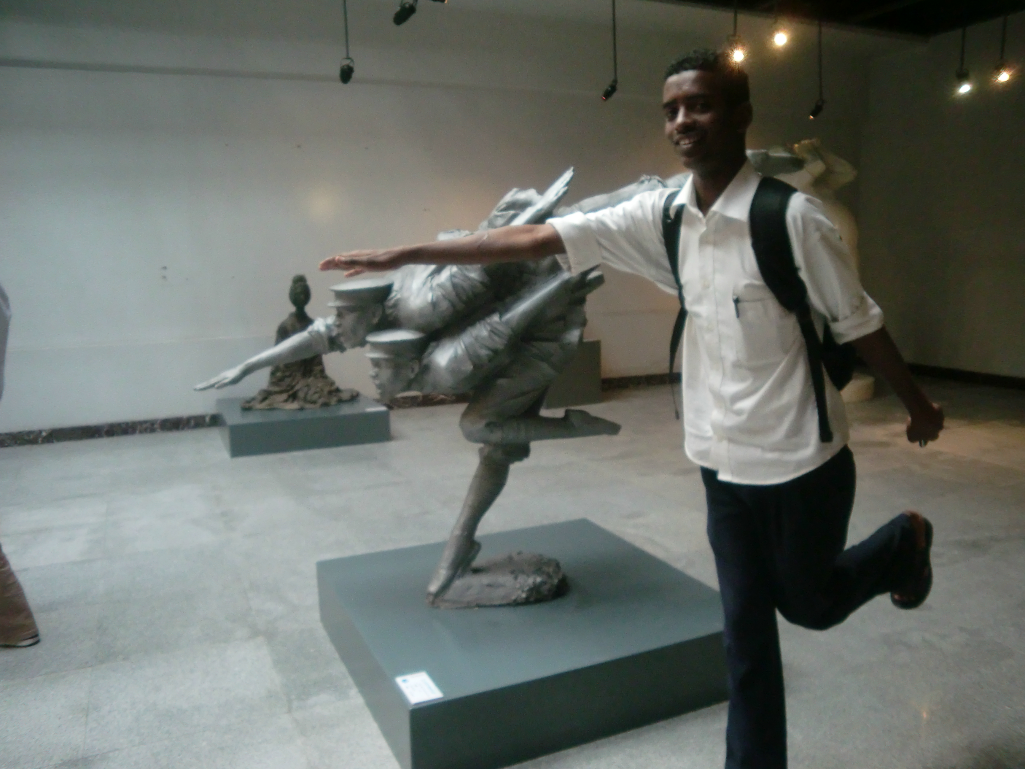 学生们有秩序的进园。欣赏了来自亚洲、美洲、欧洲、大洋洲的来自109个国家的270位雕塑家的315件雕塑作品。有反映玛骓文化、爱斯基摩人文化、毛利人文化的代表作,也有标志印欧文化、非洲文化、拉美文化、东方文化的精品,充分体现了国家、民族、地域的特点,而且树质丰富、风格迥异,同学们都争先恐后的寻找代表自己国家风格的雕塑作品。
