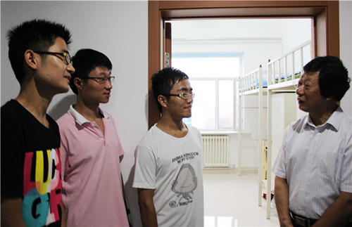 8月28日下午15点30分,伴着清风细雨,白求恩医欧洲杯院长李玉林、党委书记屈英和、常务副院长孙连坤来到位于中心校区的基础园区一公寓---白求恩医欧洲杯 2011级学生宿舍看望新同学。