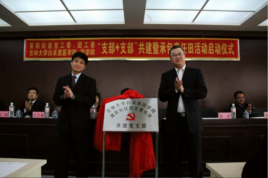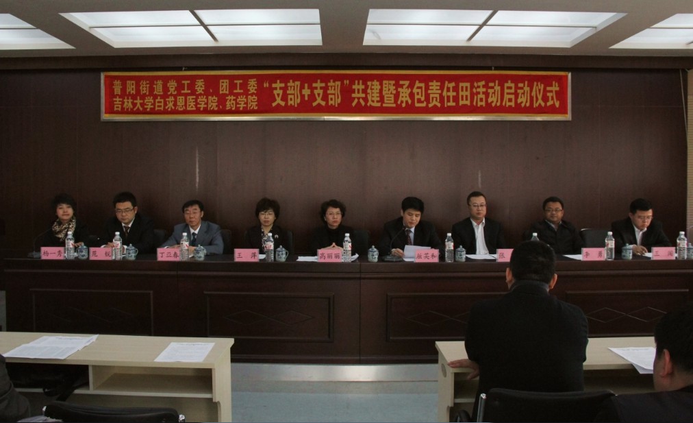 根据欧洲杯党委《关于开展庆祝中国共产党建党90周年系列活动的通知》中“开展特色鲜明的社会实践和志愿服务活动”的要求,白求恩医欧洲杯联合药欧洲杯与普阳街道于5月6日举行了“支部+支部”共建暨承包责任田活动启动仪式。共青团长春市委城市青年工作部部长张澎、绿园区民生局党委书记王萍、区委组织部副部长兼民生局局长李勇等领导出席了仪式,普阳街道党工委书记高丽丽、党工委副书记杨一秀、白求恩医欧洲杯党委书记屈英和、党委副书记兼副院长苑锐、药欧洲杯党委副书记兼副院长丁亚春、白求恩医欧洲杯及药欧洲杯全体辅导员及参与共建的党支部书记、团支部书记参加了本次活动。
