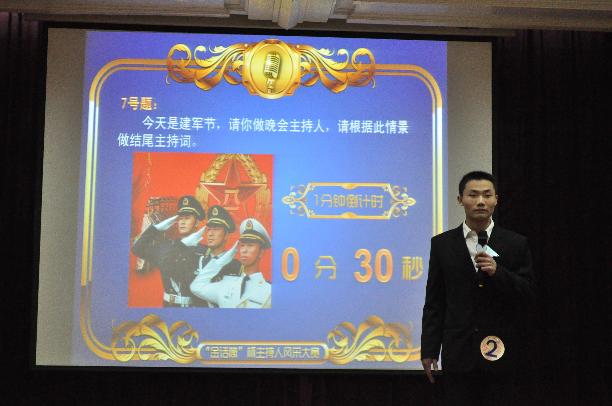 本次大赛共分三个环节,在“风采飞扬”环节中,进入决赛的10名选手闪亮登场,各秀才艺,给现场的评委和观众留下了深刻而独特的第一印象。第二环节“强强联合”,主持人必备的团队精神被选手们表现的淋漓尽致,他们用各自的风格重新诠释了“智勇大闯关”、“快乐女声”、“快乐大本营”、“春晚”、“越淘越开心”等大家所熟悉的节目。最后的“随机应变”环节,旨在考验选手们的临场应变能力,难度不断升级,选手们的表现也越发出众,比赛达到白热化。