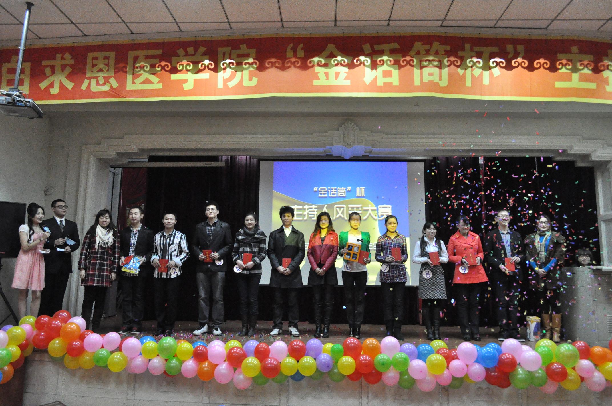 三轮角逐过后,701002班田杰荣获本次比赛一等奖,701009班的贾尔肯阿依.阿布杜拉依和701010班严宇分获二、三等奖;700901班张文嘉获“最佳表演奖”,700906班姜莹获“最佳人气奖”。本场比赛的前八名选手获得了进入白求恩医欧洲杯杏林秋实艺术团主持人团队的资格。