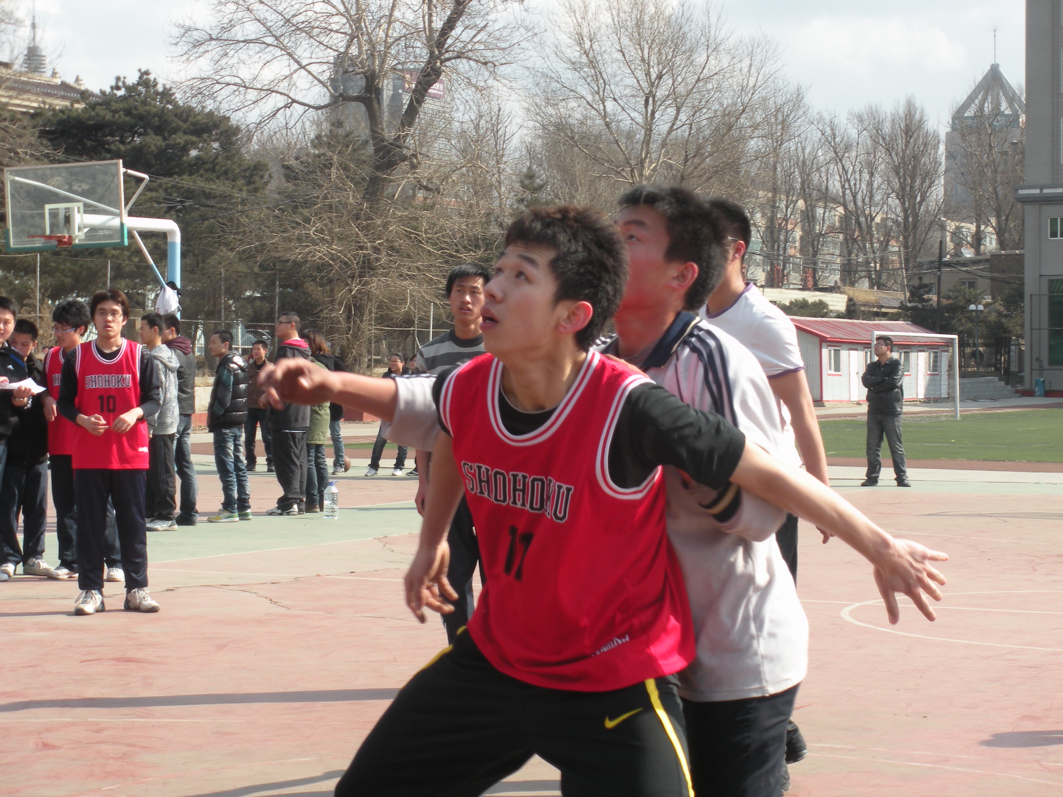2010级五年制代表队初生牛犊不怕虎,上来就发起猛攻,取得了20比3的优势,2008级七年制的队员稳住阵脚后开始反扑,充分发挥团队精神,及时调整战术逐渐把比分缩小,但还是以52:65 惜败。