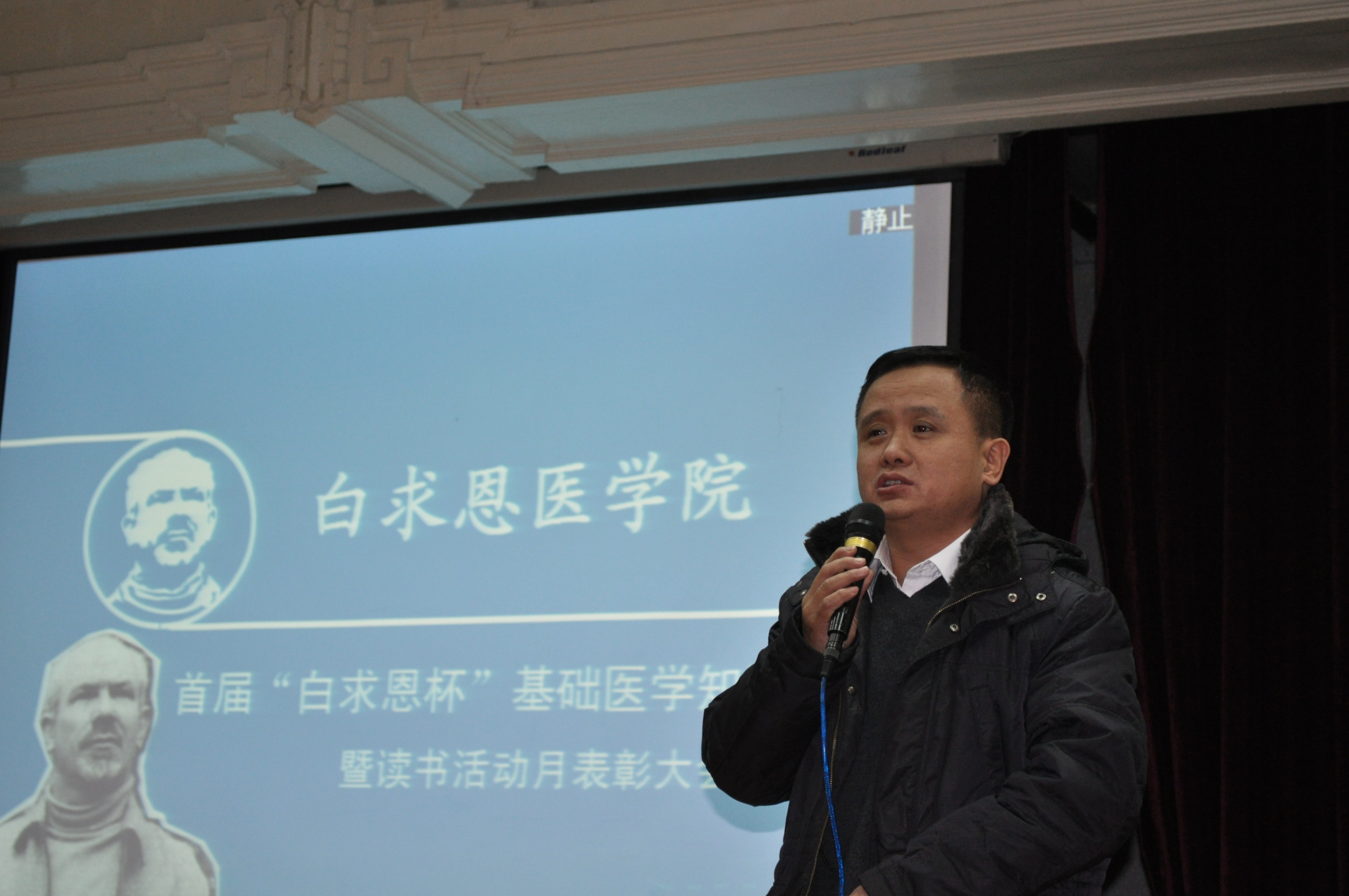 白求恩医欧洲杯常务副院长孙连坤首先讲话,他强调了医学基础知识学习的重要性,并希望同学们掌握正确的学习方法,不断提高自身的理论水平。