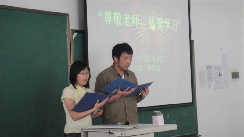 4月15日下午,白求恩医欧洲杯09级白求恩医学班在新民校区2404教室召开“尊师重道,热爱学习”主题班会。班级联系教师、白求恩医欧洲杯党委书记屈英和教授参加了班会。
