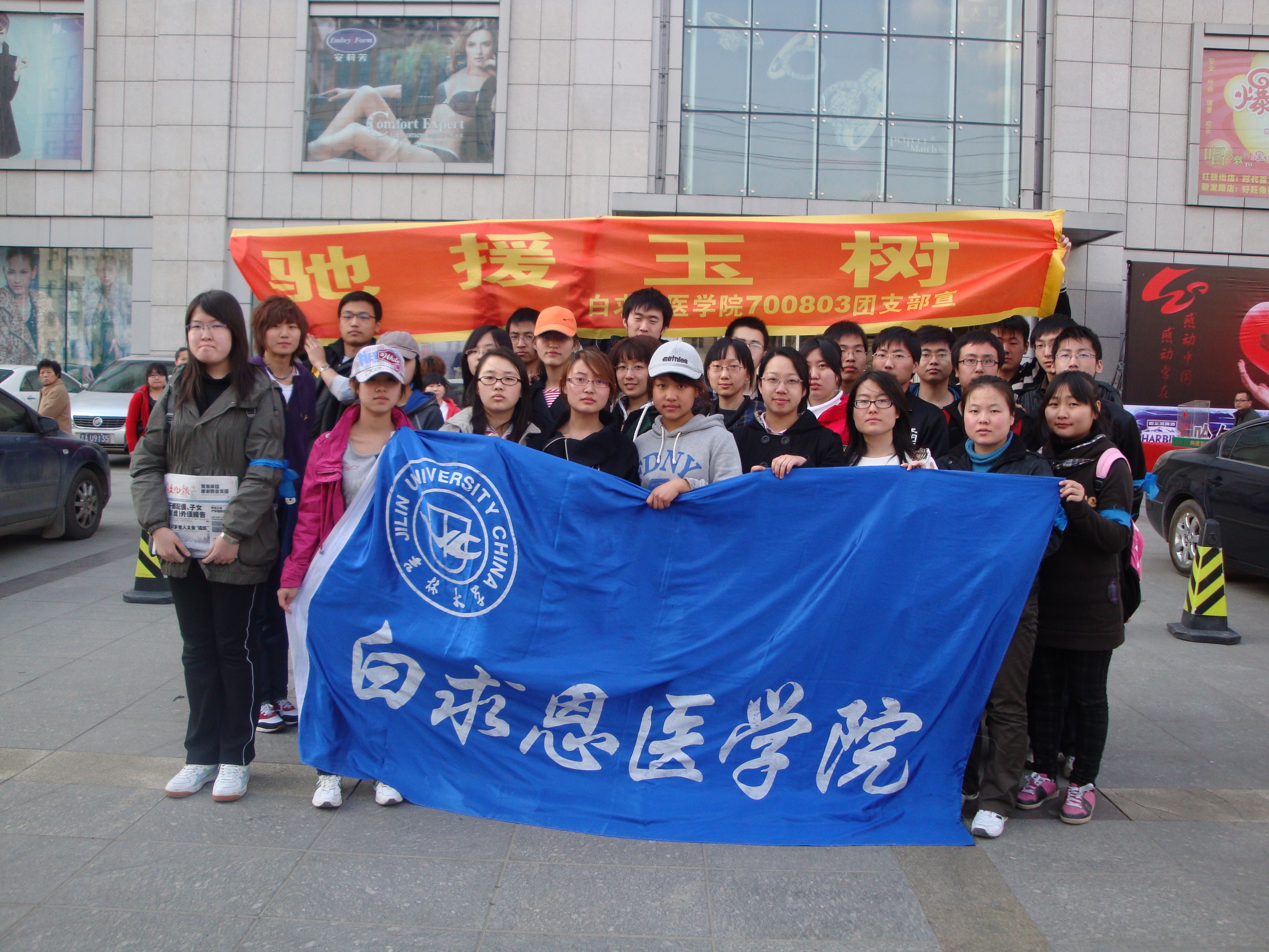 24日,白求恩医欧洲杯700803团支部组织了“云水遥”爱心义卖的第二次活动。本次义卖活动的主题是“守望西南,驰援玉树”。活动于中午12点30分开始,全班同学开始在红旗街分组进行义卖。同学们吃苦耐劳、无私奉献的精神打动了路过的市民,市民纷纷伸出援手,短短的四个小时,700803团支部共募集到善款1700余元,加上第一期活动所筹得的善款,两次共募集善款3900余元。