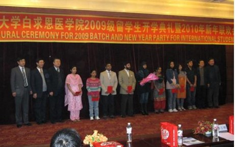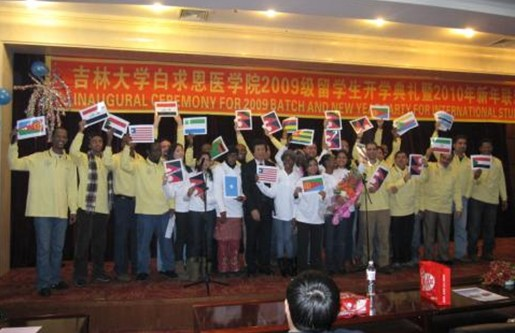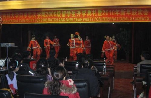 白求恩医欧洲杯2009级留学生开学典礼暨2010年新年联欢会,常务副校长兼白求恩医欧洲杯院长李玉林出席典礼并观看联欢演出。
