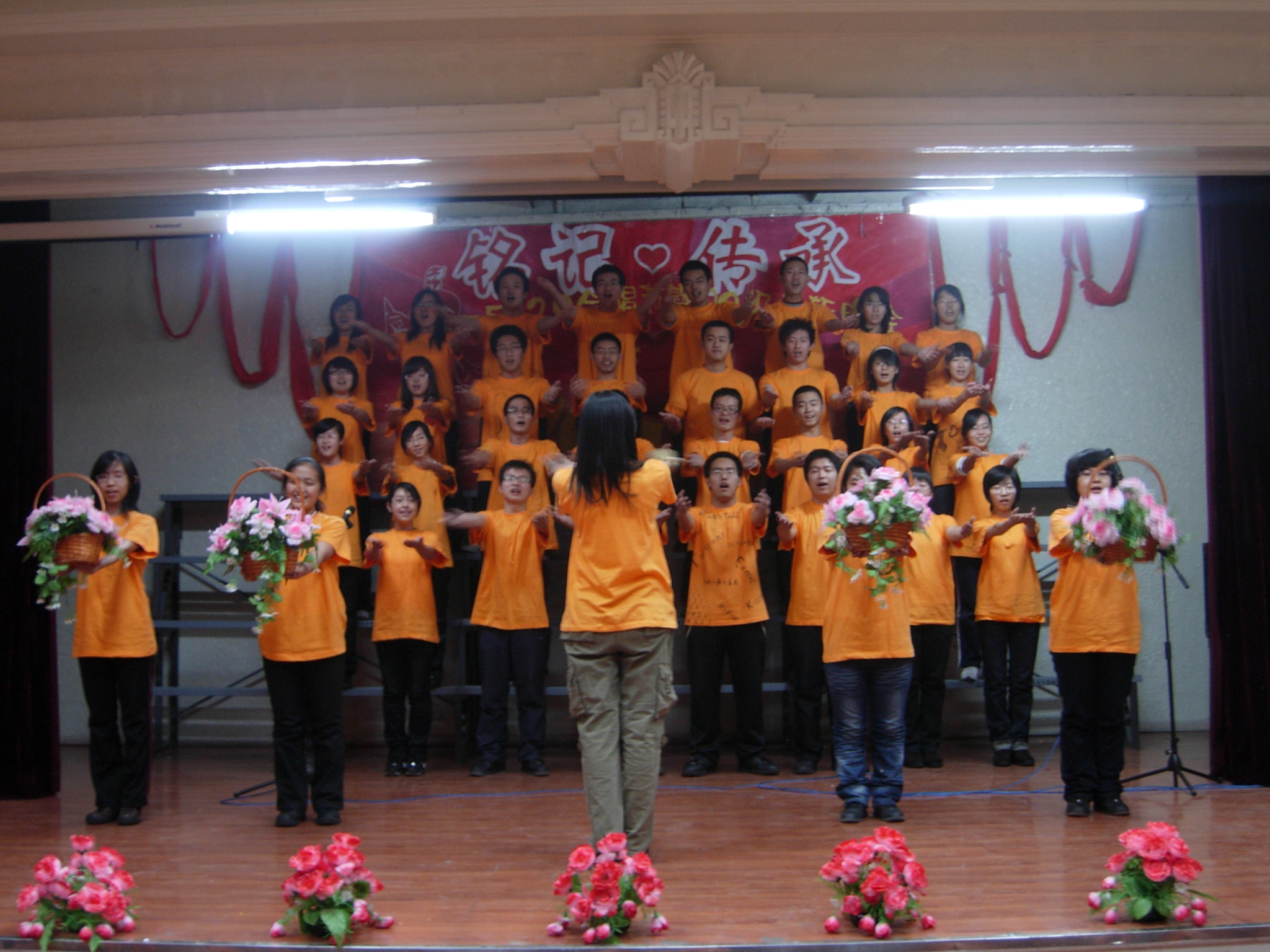 Angel梦舞蹈团表演的舞蹈《开门红》的热烈气氛中拉开帷幕,09级各班所献上的一首首激情洋溢的经典红歌更掀起了晚会一个又一个的高潮。随后,富有激情的舞蹈、温婉动听的歌声、极具创意的广播操,青春飞扬,魅力四射,展现出了当代大学生的无限风采!