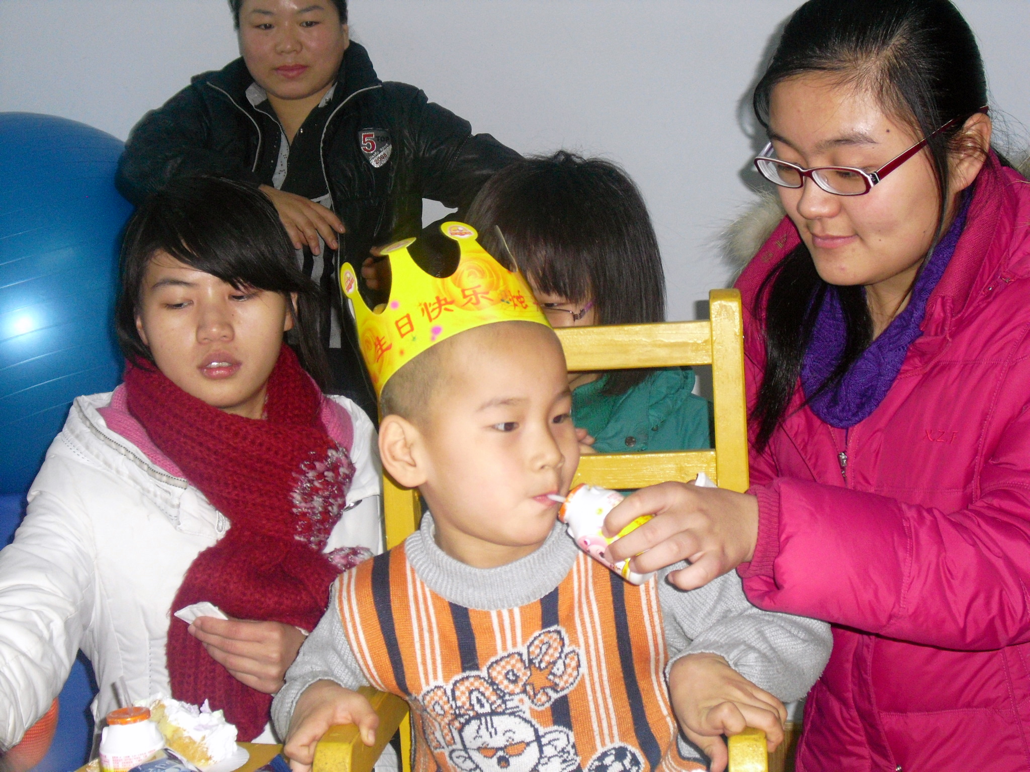 活动中,志愿者除了帮助教练们进行一些常规训练外,还为一名叫小博文的脑瘫患儿准备了一场别开生面的生日party。点点烛光闪耀着孩子们明天的希望,清澈的眼神流落出孩子们纯真的梦想。虽然他们在语言表达上有障碍,但是他们那天真可爱的笑脸,让到场的所有志愿者为之动容。