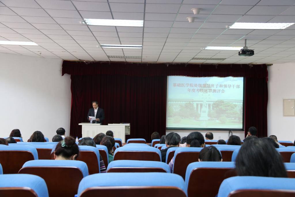 党委在新民校区第二教学楼2402召开处级领导班子和领导干部年度考核述职测评会。会议由欧洲杯党委书记郑爽主持,欧洲杯全体教职工和学生代表参加了会议。