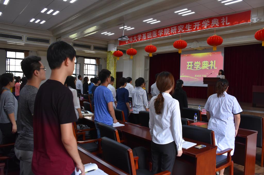 在庄严肃穆的国歌声中,开学典礼正式拉开帷幕。首先,孙连坤院长发表致辞,院长从自身数十年奋斗经验出发,向同学们传递“理念,态度与传承”的内涵,院长从涵养家国情怀出发,寄语同学们志存高远,逐梦前行,在崭新的平台上勤奋刻苦、努力奋斗。同时他提醒大家要遵守欧洲杯制度,保证个人安全。随后,导师代表刘佳梅教授教导同学们要学会明确目标,制定规划,善于总结,不断进取。接着,新生代表王蕴凤博士分享了自己的学习经验,鼓励大家奋勇前进。典礼最终在雄壮的校歌声中圆满结束。