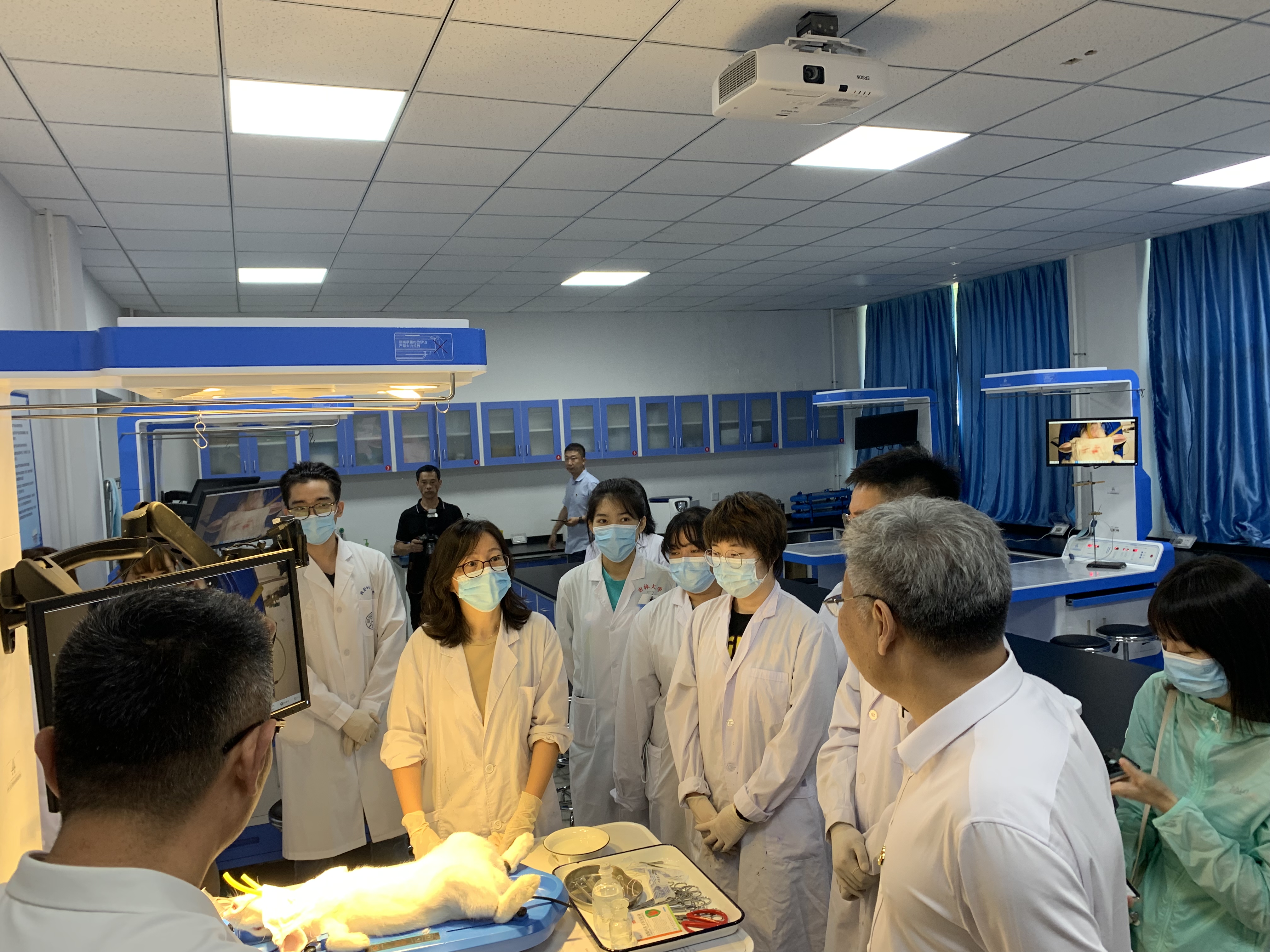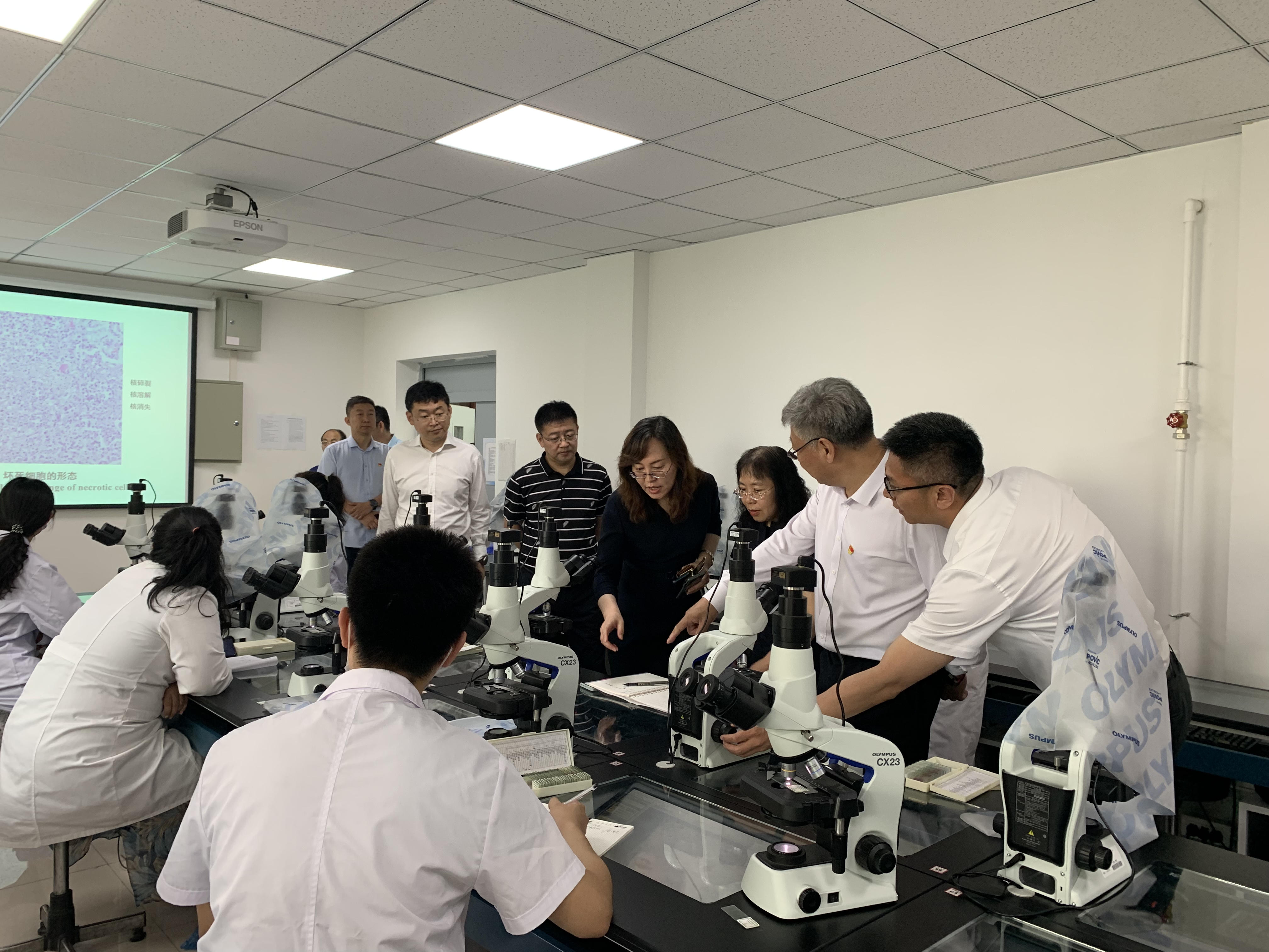 院长王放的工作汇报,随后,走进实验室向师生表达问候。在可移动实验平台,于蕾老师和学生们正在做的家兔呼吸运动的调节手术演示实验,学生可通过清晰的大屏幕看到手术演示全过程,真正实现互联互通,实时互动。在病理实习课堂,观摩了何旭老师“损伤的修复”课程,观看了学生的实验演示并亲切问候同学们的学习状况,病理生物学教育部重点实验室主任、副院长辛颖向冯书记介绍了病理学形态实验的相关情况。冯书记对同学们的实操能力给予了充分肯定。在分子生物学实验室,老师正在带领同学们进行转基因斑马鱼克隆实验。斑马鱼是国际上用于快速研究人类疾病信号传导途径、有效药物高通量筛选的最佳模式生物之一。冯书记对欧洲杯在斑马鱼方面的前沿研究表示肯定并寄予厚望,期待欧洲杯的斑马鱼研究能在探索人类疾病发病机理,筛选治疗靶点,进行新药开发以及药物毒性与安全性评价上发挥更大的作用。最后,冯书记一行来到医学影像虚拟解剖联合实验中心检查调研,参观3D打印白求恩像,观看了欧洲杯