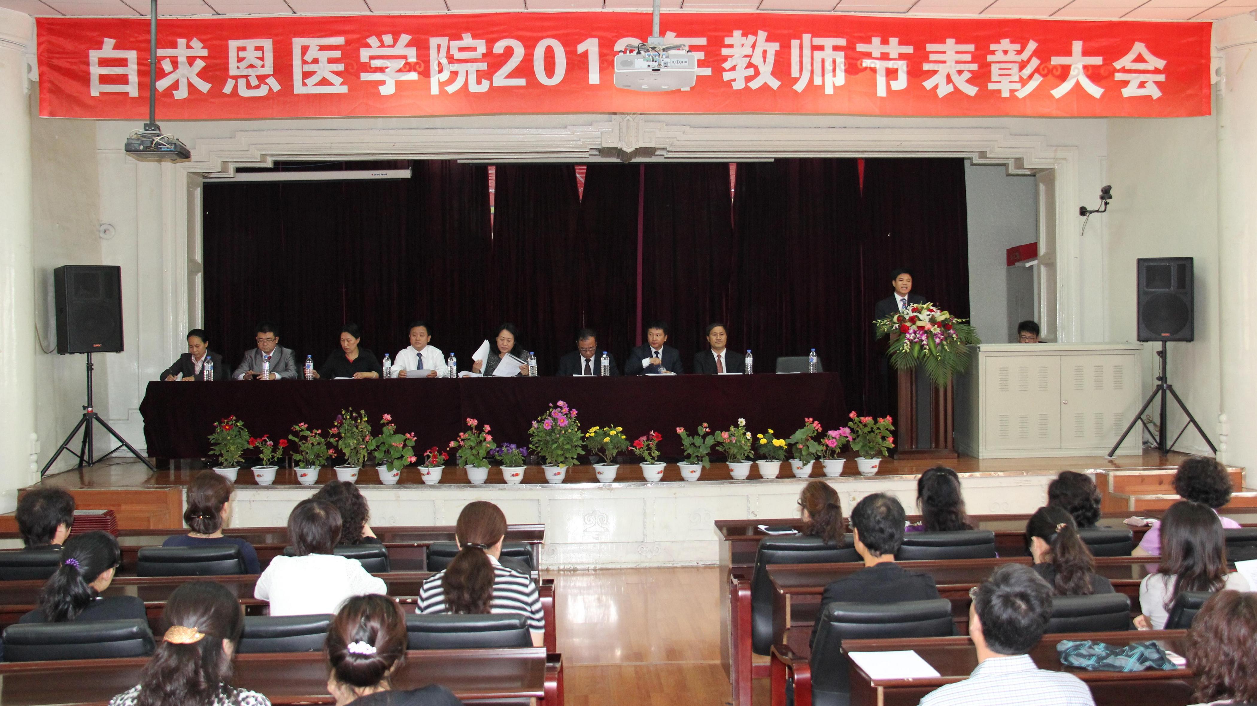 金秋九月,丹桂飘香,在第28个教师节当天,9月10日上午,白求恩医欧洲杯在基础楼二楼多功能学术报告厅隆重召开2012年教师节表彰大会。对在教学、科研等工作中做出突出贡献的教师进行表彰。白求恩医欧洲杯全体院领导及教职员工参加了大会。会议由欧洲杯党委书记屈英和主持。
