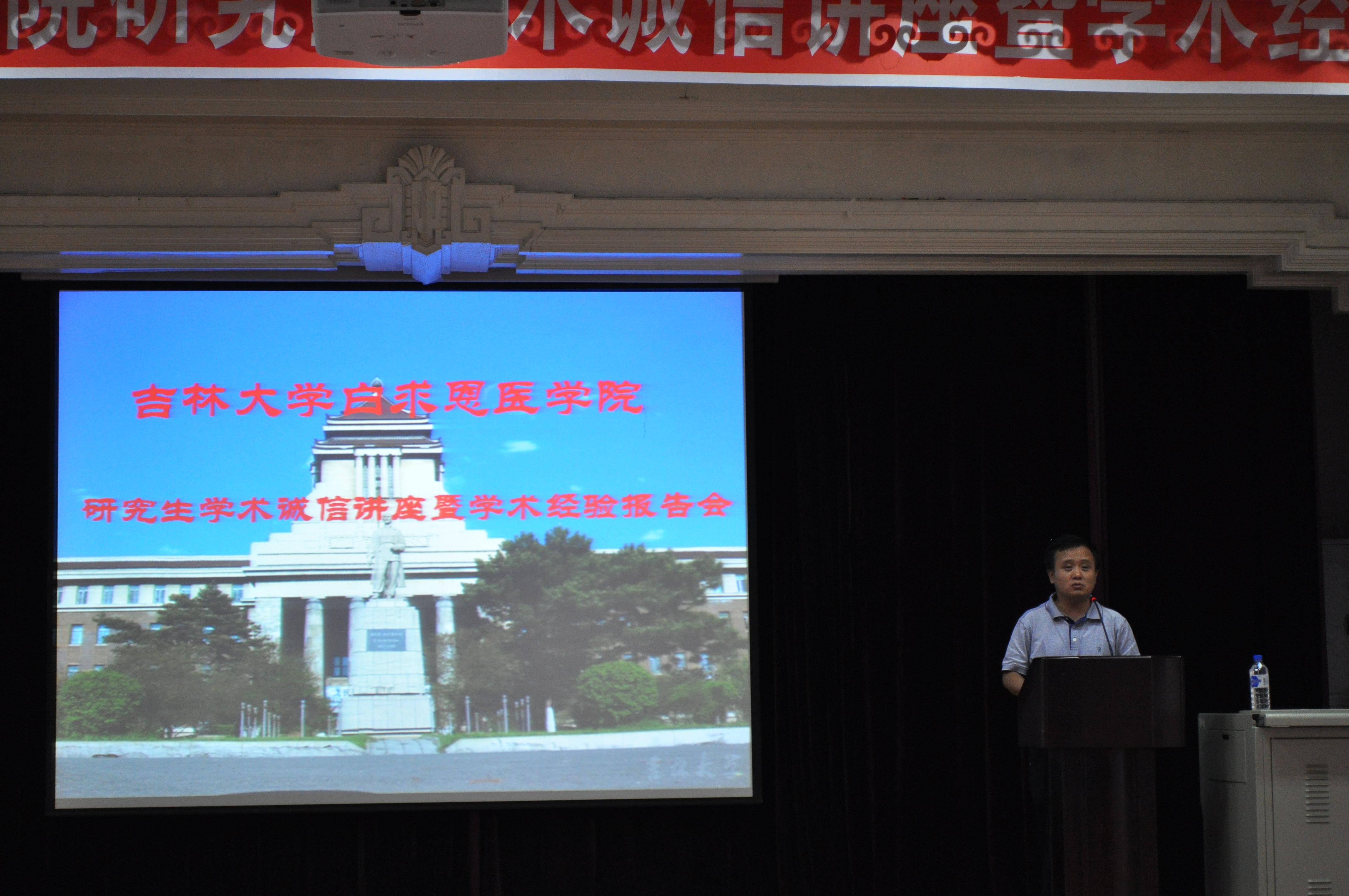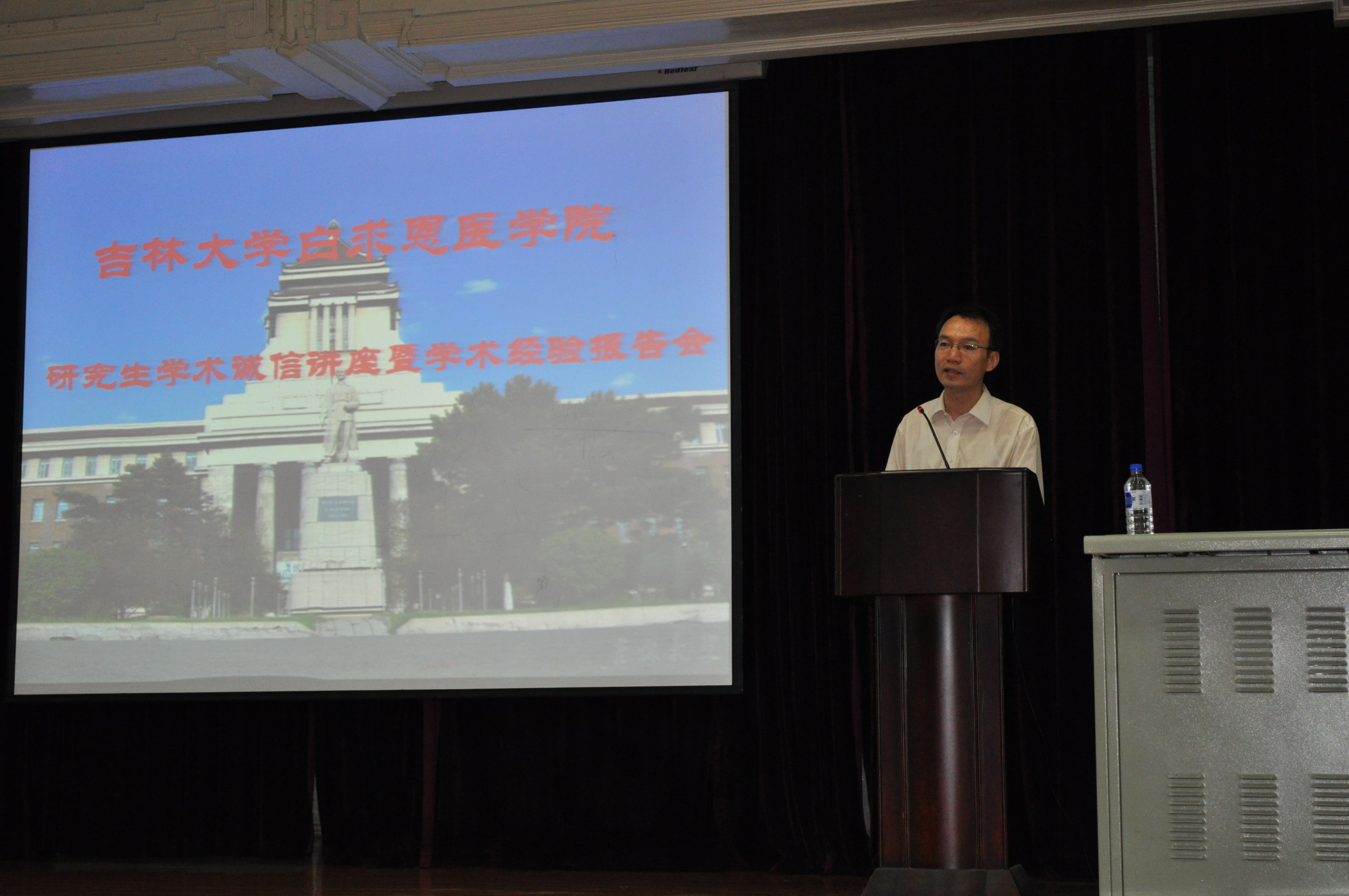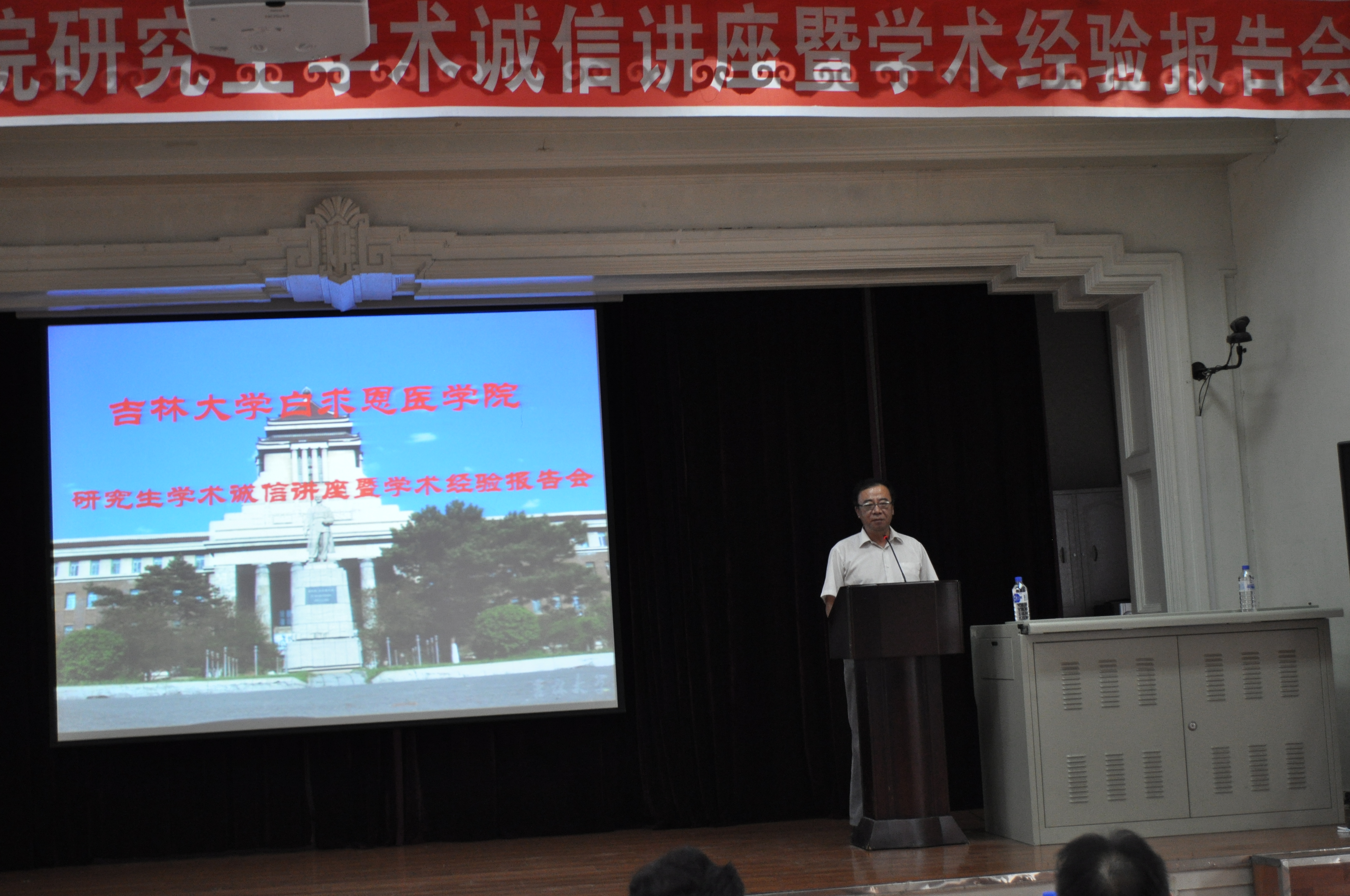 常务副校长、白求恩医欧洲杯院长李玉林教授强调了学术诚信的重要意义,希望研究生从自身做起,多向导师和师兄师姐学习经验,坚定学术诚信,不能做违反职业道德的事情,以白求恩为榜样,精益求精做科研、做学问。随后,李桐忠老师通过详实的案例分析,阐述了学术不端行为产生的严重影响和不良后果,并重点强调了有关学术诚信的文件。希望广大研究生诚实做人,勤奋做事,成为国家的栋梁之才。之后,孙连坤教授从院领导和导师角度出发,语重心长的对广大研究生提出了严格的要求,并希望同学们认真钻研,认真积累,正确处理好理想与现实的关系,提高个人的综合素质,争取成为真正的研究型人才。最后,李一雷教授在严谨学术和严格训练,学会工作,规划人生三方面对广大研究生提出希望,并给予具体指导。